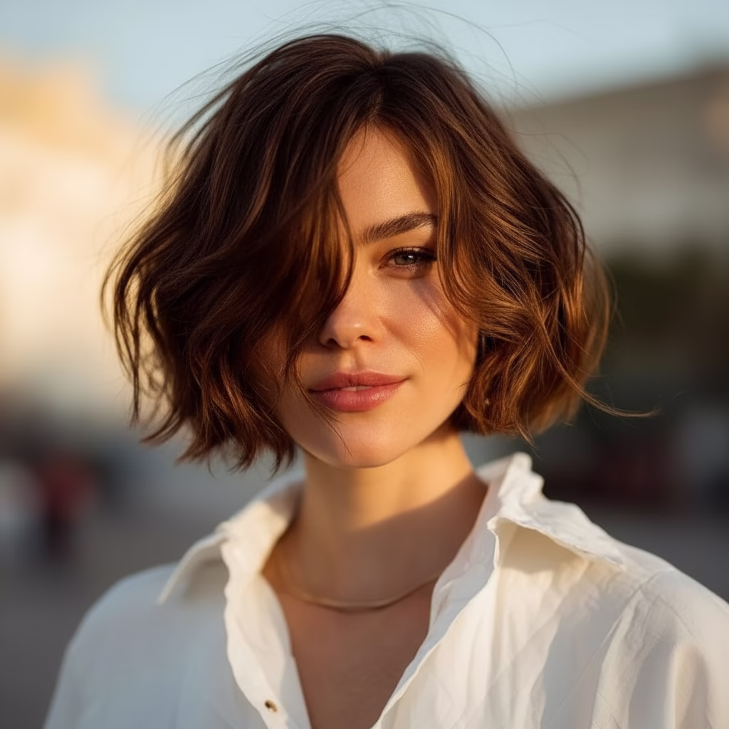 Moderne gestufte Bob Frisuren für Damen setzen auf Natürlichkeit und Bewegung. Statt strenger Linien dominieren fließende Übergänge und eine luftige Struktur. Der Bob wirkt dadurch zeitgemäß und feminin.