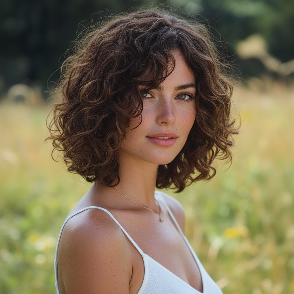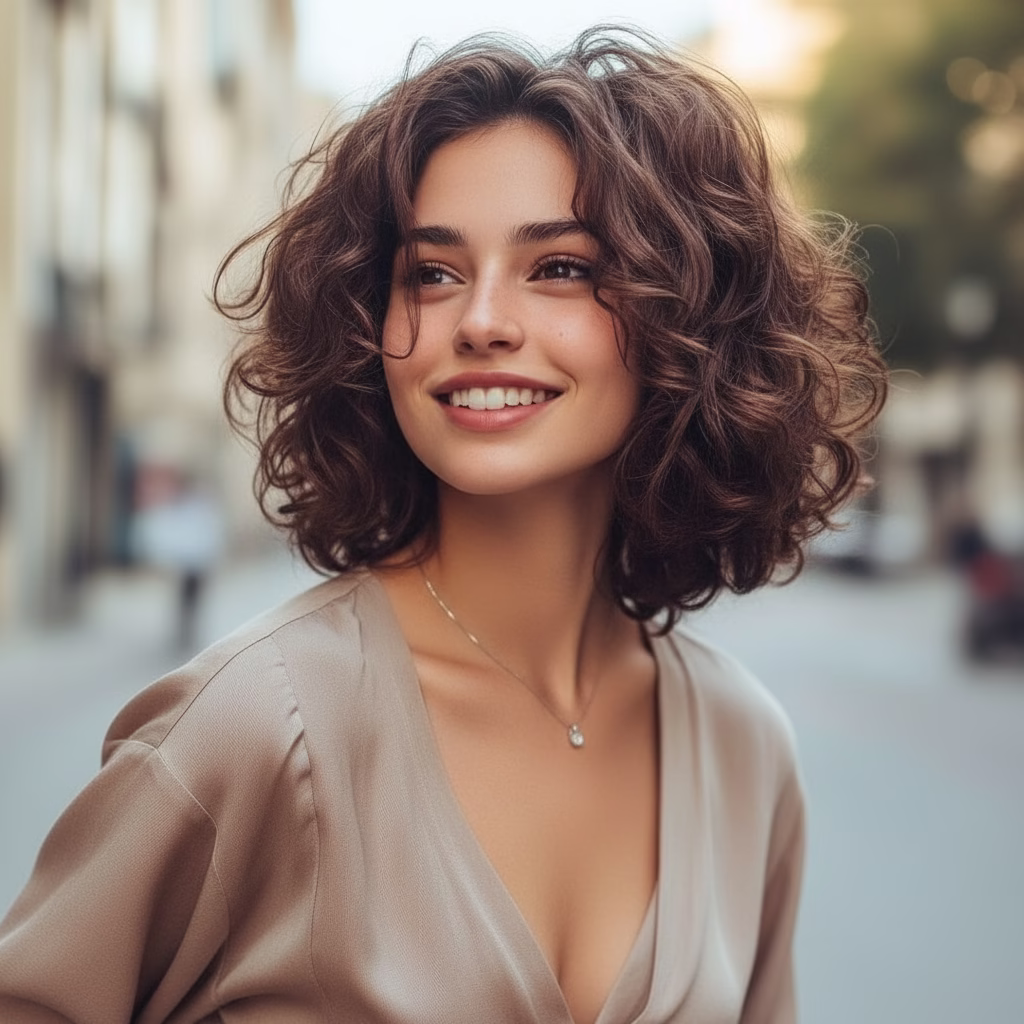 Eine Frisur ist immer auch ein Spiegel der Persönlichkeit. Der mittellange Lockenbob wirkt offen, lebendig und stilvoll zugleich. Er vermittelt Selbstsicherheit, ohne streng zu erscheinen, und unterstreicht individuelle Gesichtszüge auf sanfte Weise.