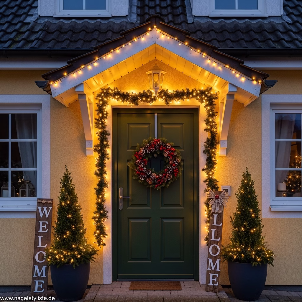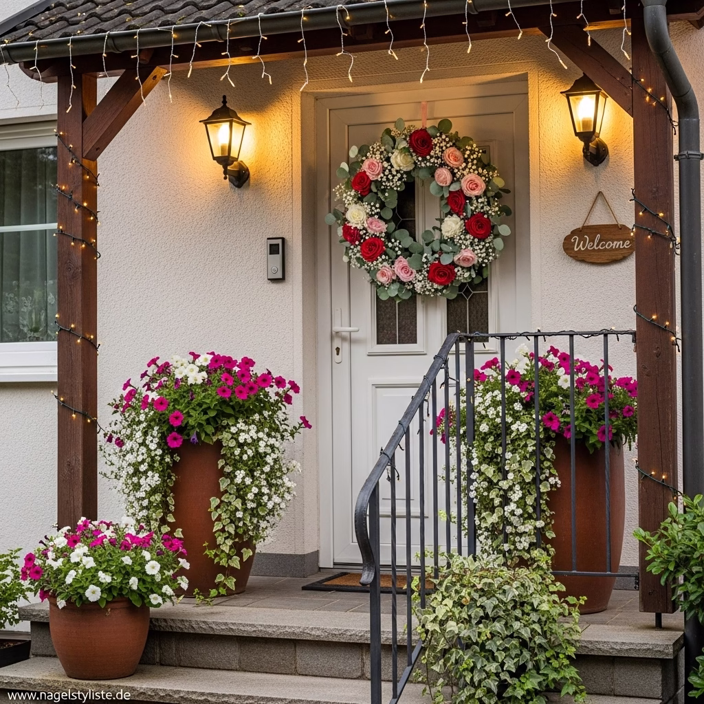 Der Eingangsbereich ist der Fokus jeder Außengestaltung. Hier entscheidet sich, ob ein Haus offen, freundlich oder distanziert wirkt. Eine stimmige Dekoration verleiht dem Eingang Präsenz und Struktur, ohne ihn zu überladen.