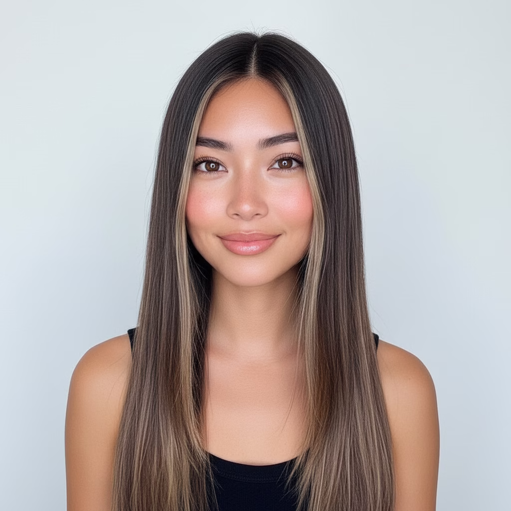 Glattes Haar bringt Highlights perfekt zur Geltung, da die Strähnen in ihrer geraden Struktur klar sichtbar bleiben und die Farbe präzise reflektieren. Das macht diesen Look so modern: Er wirkt luxuriös, aber zurückhaltend. Die Kombination aus glattem Haar und zarten Farbakzenten bringt eine ganz neue Form von Schlichtheit und Eleganz.