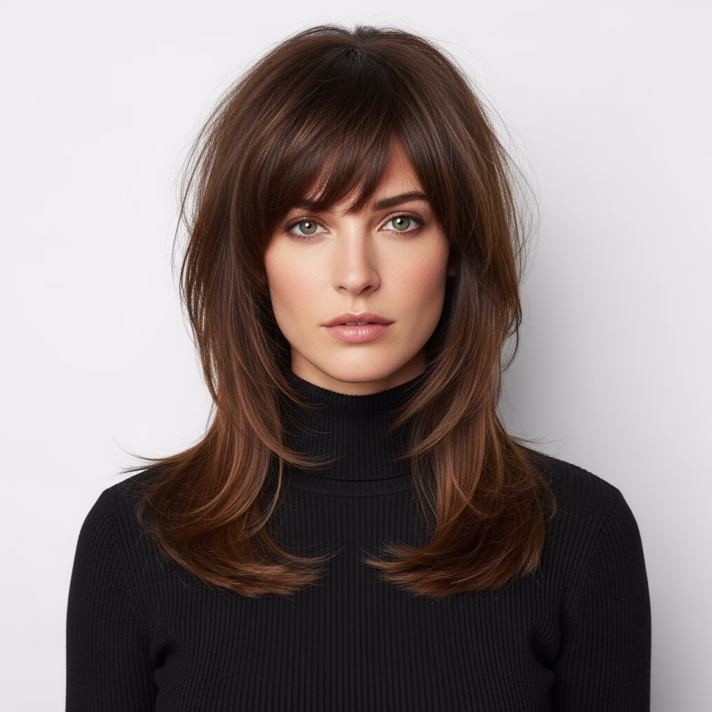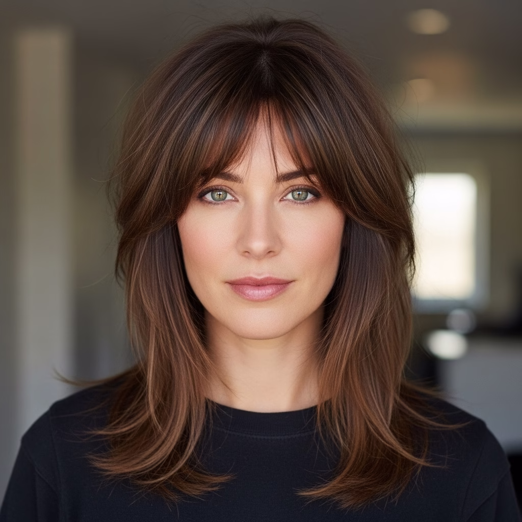 Ein weiterer wichtiger Trend sind sogenannte „Brown-on-Brown“-Highlights. Dabei handelt es sich um Strähnen, die nur wenig heller sind als das Grundhaar, sodass ein fast unsichtbarer, aber dennoch wirkungsvoller Tiefeneffekt entsteht. Diese Technik ist besonders beliebt bei glattem Haar, da die subtilen Farbschattierungen hier besonders gut sichtbar werden. Brown-on-Brown-Looks wirken unglaublich hochwertig und verleihen braunem Haar eine dreidimensionale Struktur, die modern und dennoch natürlich erscheint. Diese Art von Highlights zählt zu den elegantesten Varianten für 2026, da sie präzise Akzente setzen, ohne sich in den Vordergrund zu drängen.
