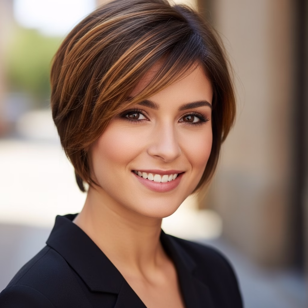 Beim Short Bob kommen Highlights besonders gut zur Geltung, weil die Haarlänge genug Raum für Farbnuancen bietet. Ob Balayage-Effekte oder klassische Strähnen – sie geben der Frisur mehr Tiefe und Schwung.