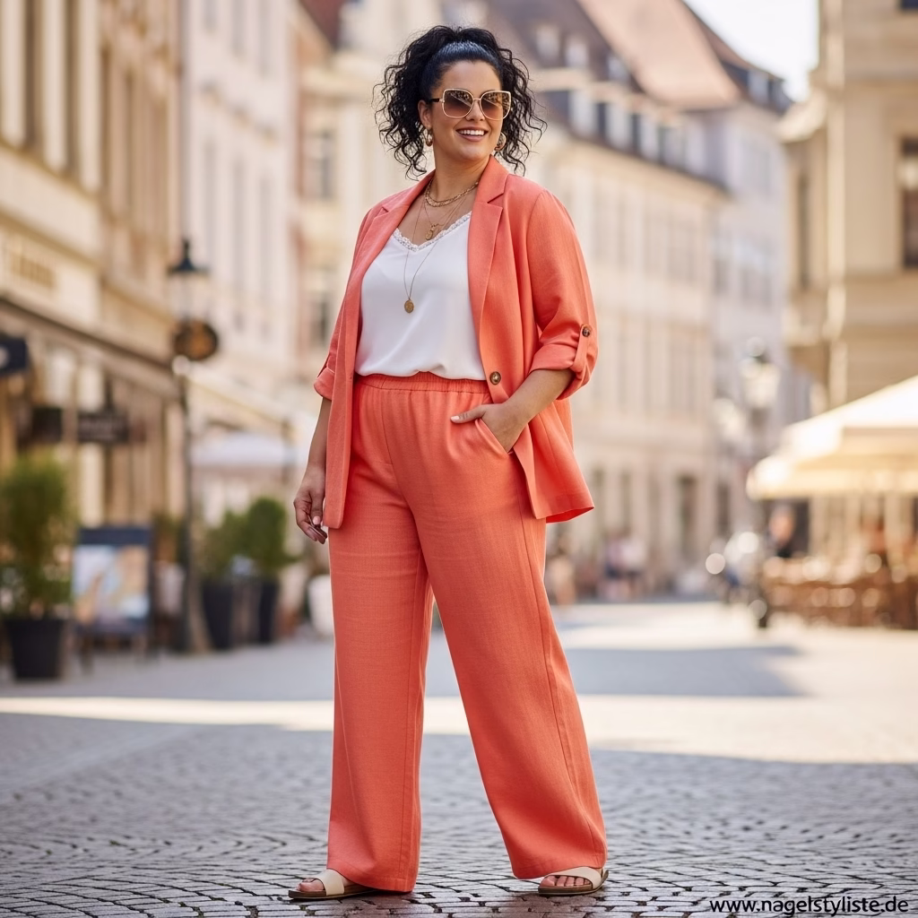 Der Plus-Size-Hosenanzug beweist, dass Ästhetik nicht normiert ist. Schönheit entsteht durch Harmonie, Ausstrahlung und Qualität – nicht durch Zahlen auf einem Etikett.