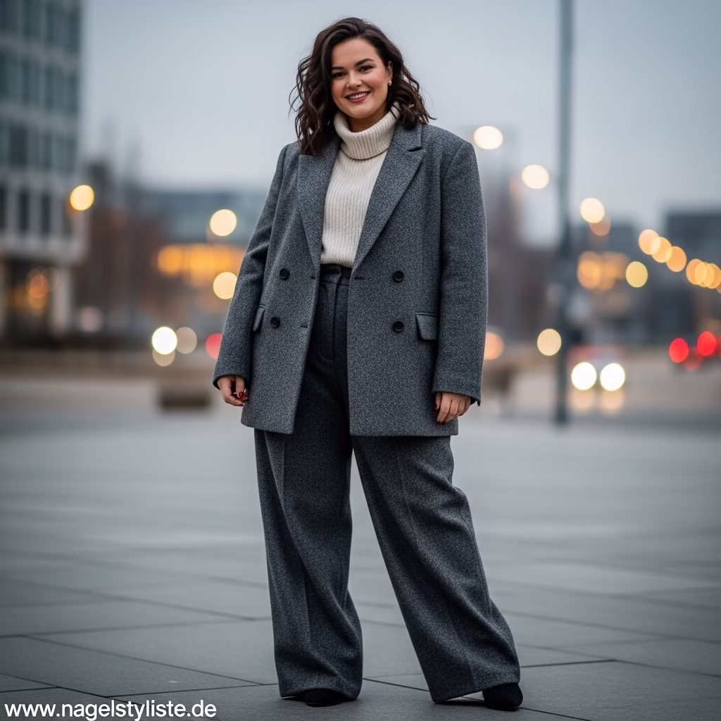 Ein Hosenanzug vermittelt Präsenz. In Plus Size wird diese Präsenz nicht versteckt, sondern bewusst gezeigt. Der Look wirkt souverän, ruhig und selbstsicher.