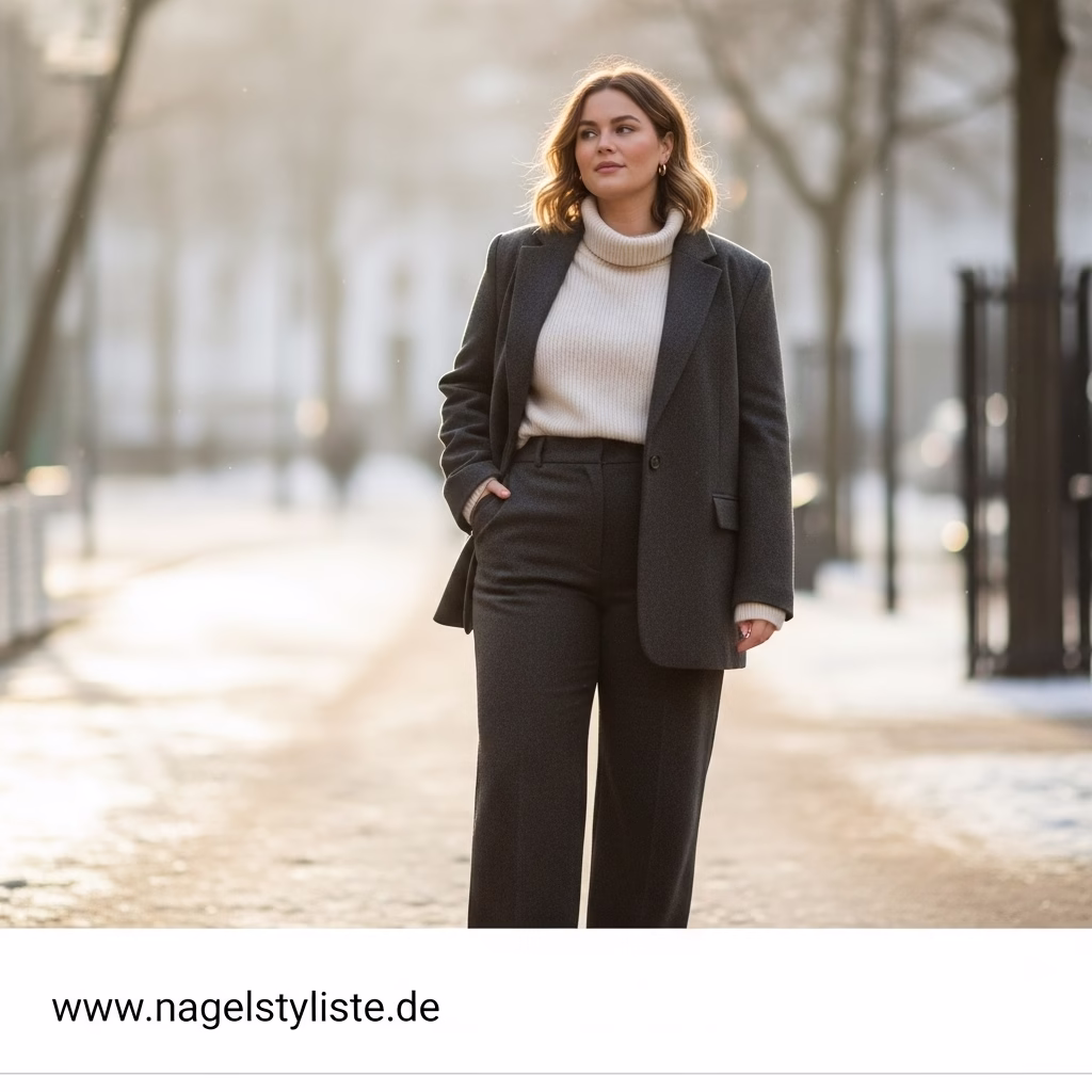 Ein moderner Hosenanzug in Plus Size vereint Stil und Tragekomfort. Bewegungsfreiheit und ein angenehmes Körpergefühl sind essenziell. Komfort wird dabei nicht als Zusatz, sondern als Grundvoraussetzung verstanden.