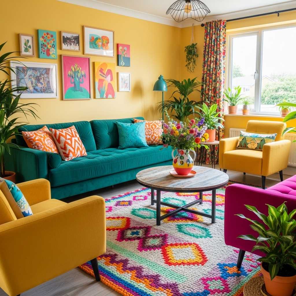 Das Wohnzimmer ist oft der zentralste Raum eines Zuhauses. Hier wird empfangen, entspannt, gelebt. Eine bunte Inneneinrichtung macht diesen Raum persönlich und unverwechselbar.