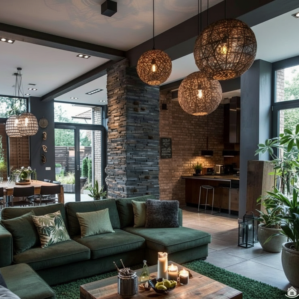 Inneneinrichtung Wohnzimmer grün verbindet Natur, Ruhe und Lebendigkeit. Grüntöne schaffen Ausgleich, fördern Entspannung und lassen Räume harmonisch wirken. Durch die Kombination mit passenden Materialien, Licht und ausgewählten Akzenten entsteht ein Wohnzimmer, das nicht nur schön aussieht, sondern sich auch gut anfühlt.