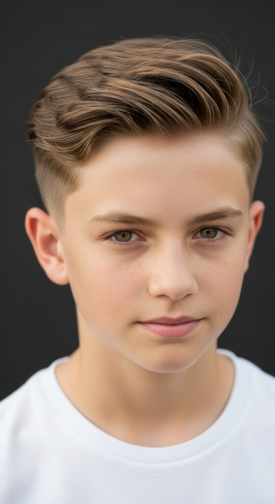 Mit rasierten Seiten und längerem Deckhaar ist der Undercut ein echter Hingucker unter den freche kurz coole jungs frisuren. Ob gegelt oder locker – dieser Schnitt lässt Spielraum für Styling. 🎯