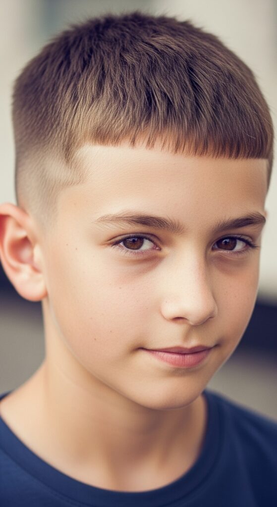 Die wohl zeitloseste Variante: ein klassischer kurzer Schnitt mit klaren Konturen. Ideal für aktive Jungs, die morgens nicht lange vor dem Spiegel stehen möchten. 💨