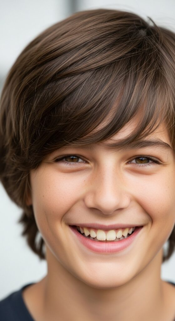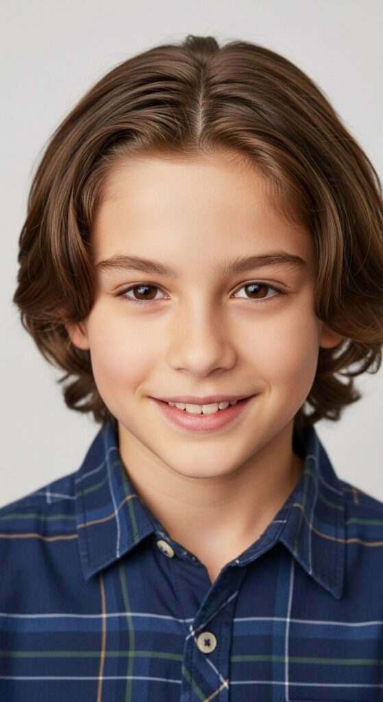 Diese moderne frisur für jungs lebt von Volumen und natürlicher Bewegung. Besonders beliebt bei Jungs ab 10, die schon ein eigenes Stilempfinden zeigen. 🎧