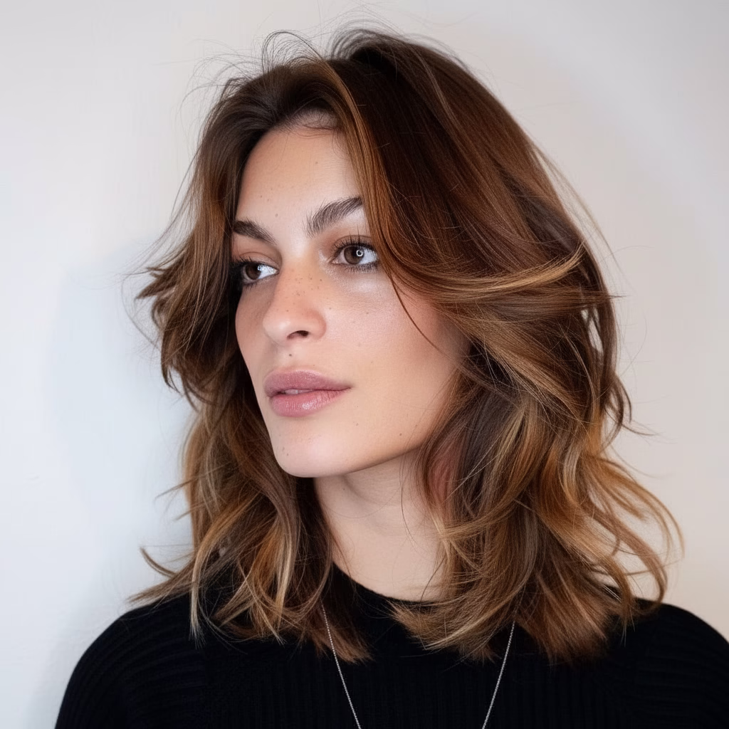 Vor allem Frauen mit einer natürlichen Haarbewegung profitieren von diesem Schnitt, weil die Stufen die eigene Struktur subtil hervorheben. Aber auch glatte Haare erhalten durch die weichen Abstufungen einen modernen Touch, der nicht künstlich wirkt.