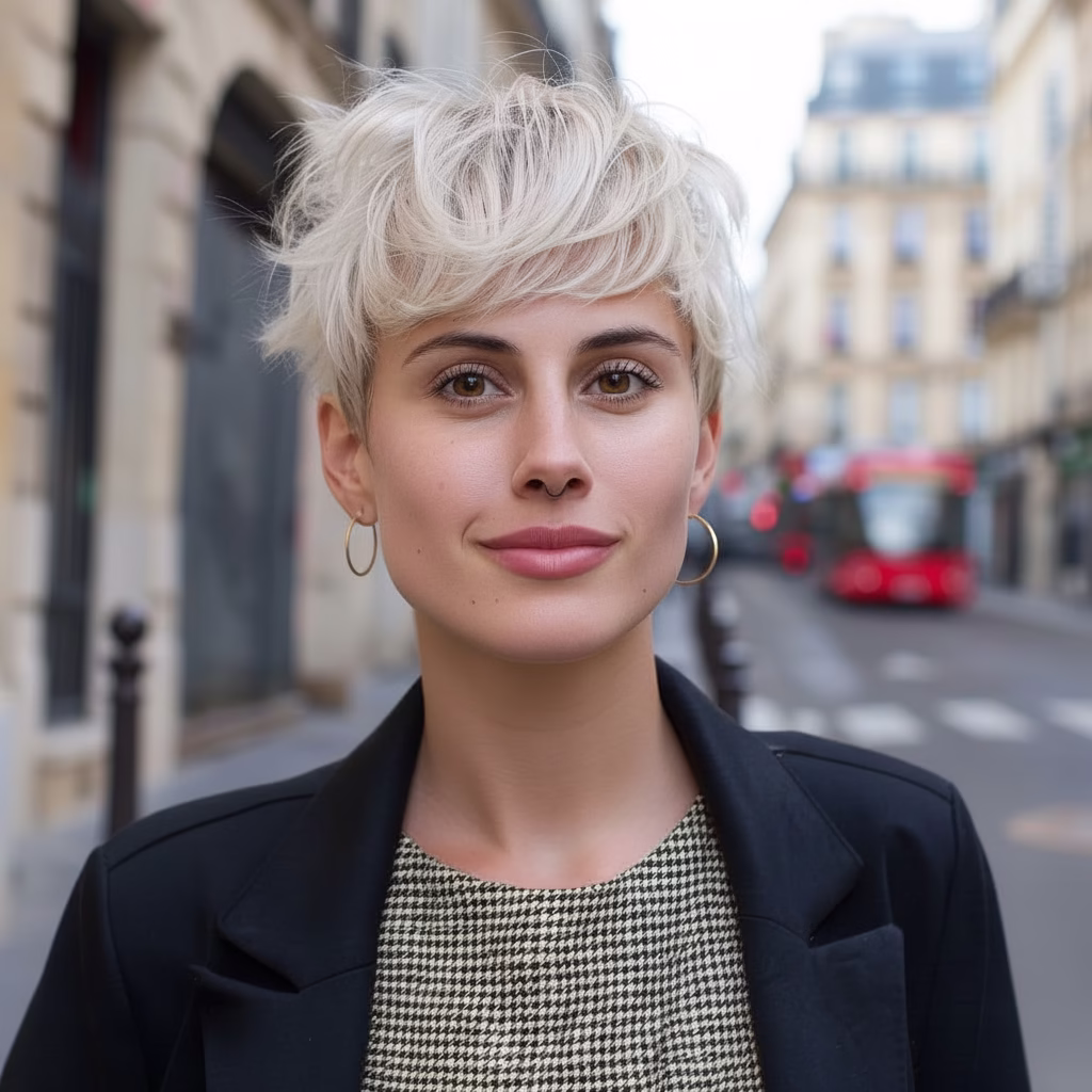 Der Pixie ist perfekt für Frauen, die ihren individuellen Stil unterstreichen möchten – mutig, kraftvoll und dennoch absolut modern.