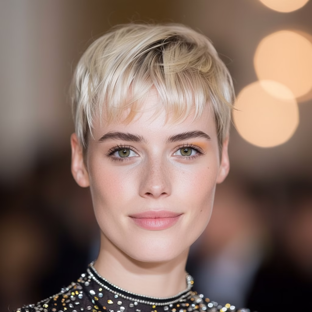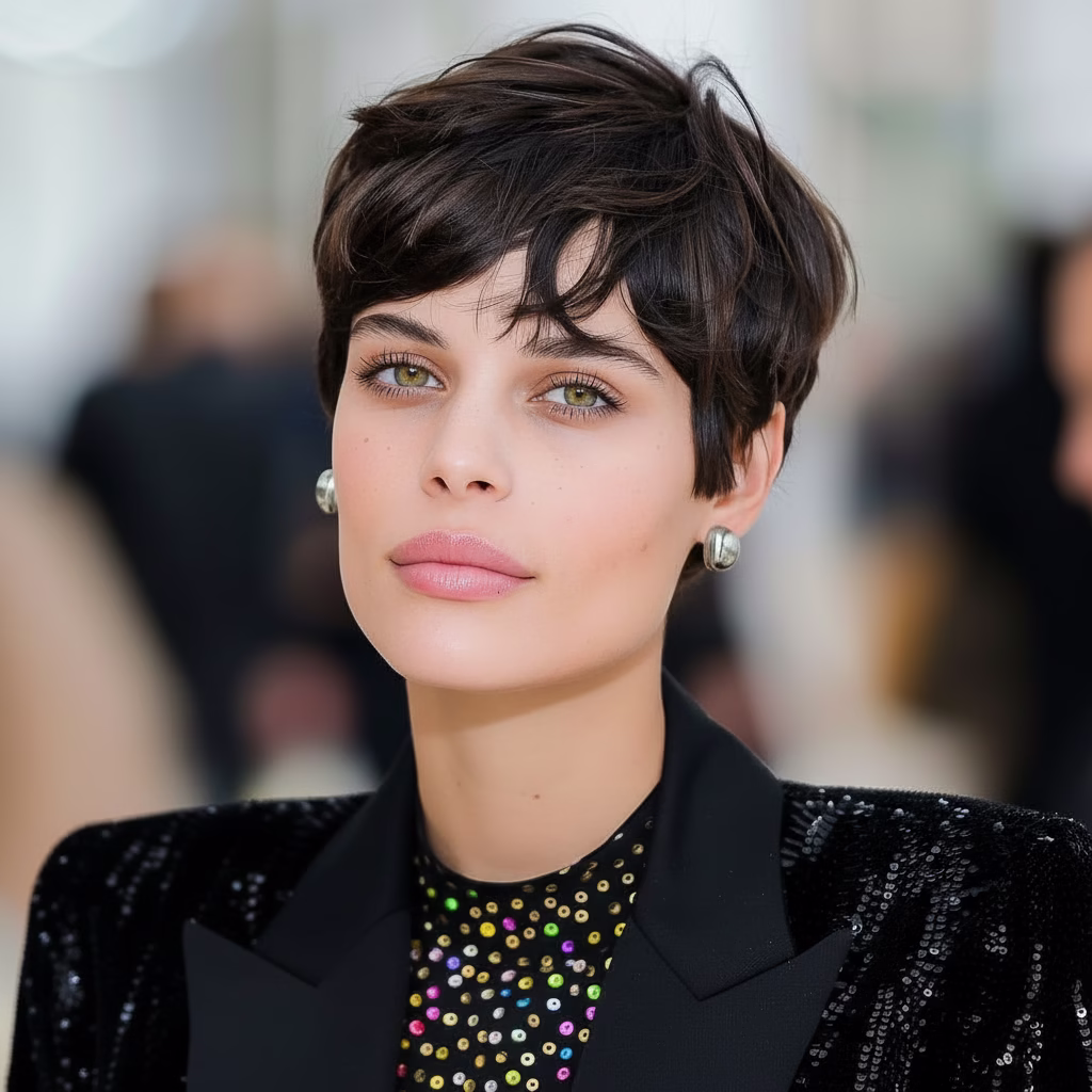 Mode-Influencerinnen, Schauspielerinnen und internationale Models tragen kurze Looks mit Stolz – oft kombiniert mit hochwertigen Outfits, minimalistischen Accessoires und einem zeitlosen Make-up.