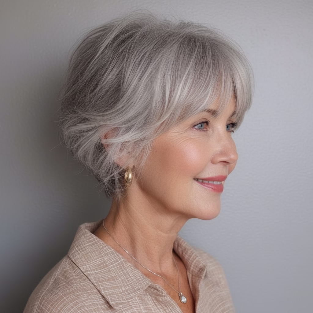 Strukturierte Kurzhaarfrisuren vermitteln Klarheit und Stärke. Sie wirken selbstbewusst und modern, ohne streng zu erscheinen. Gerade Frauen ab 60 schätzen diese Balance zwischen Ordnung und Individualität.