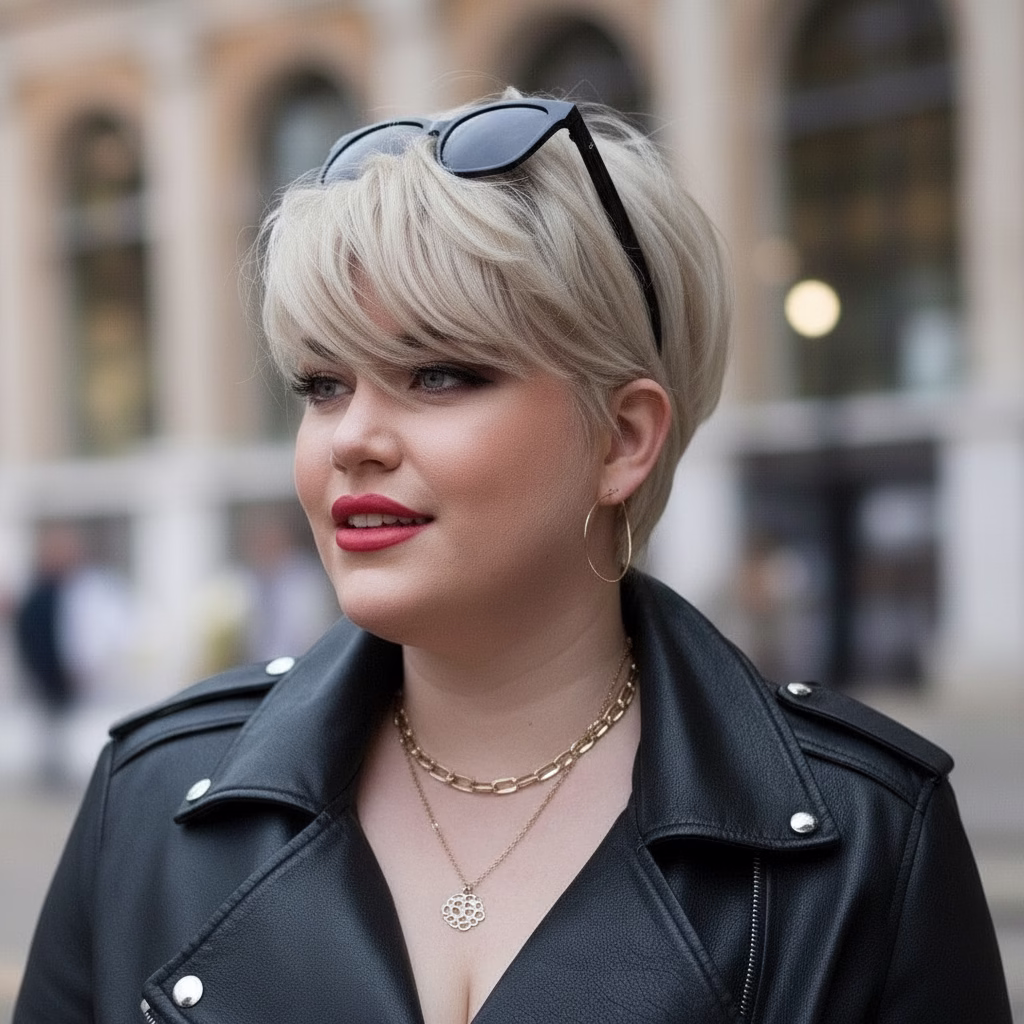 Kurzhaarfrisuren lassen Persönlichkeit sichtbar werden. Sie lenken den Blick auf Mimik, Haltung und Ausstrahlung. Bei einem volleren Gesicht verstärkt sich dieser Effekt.