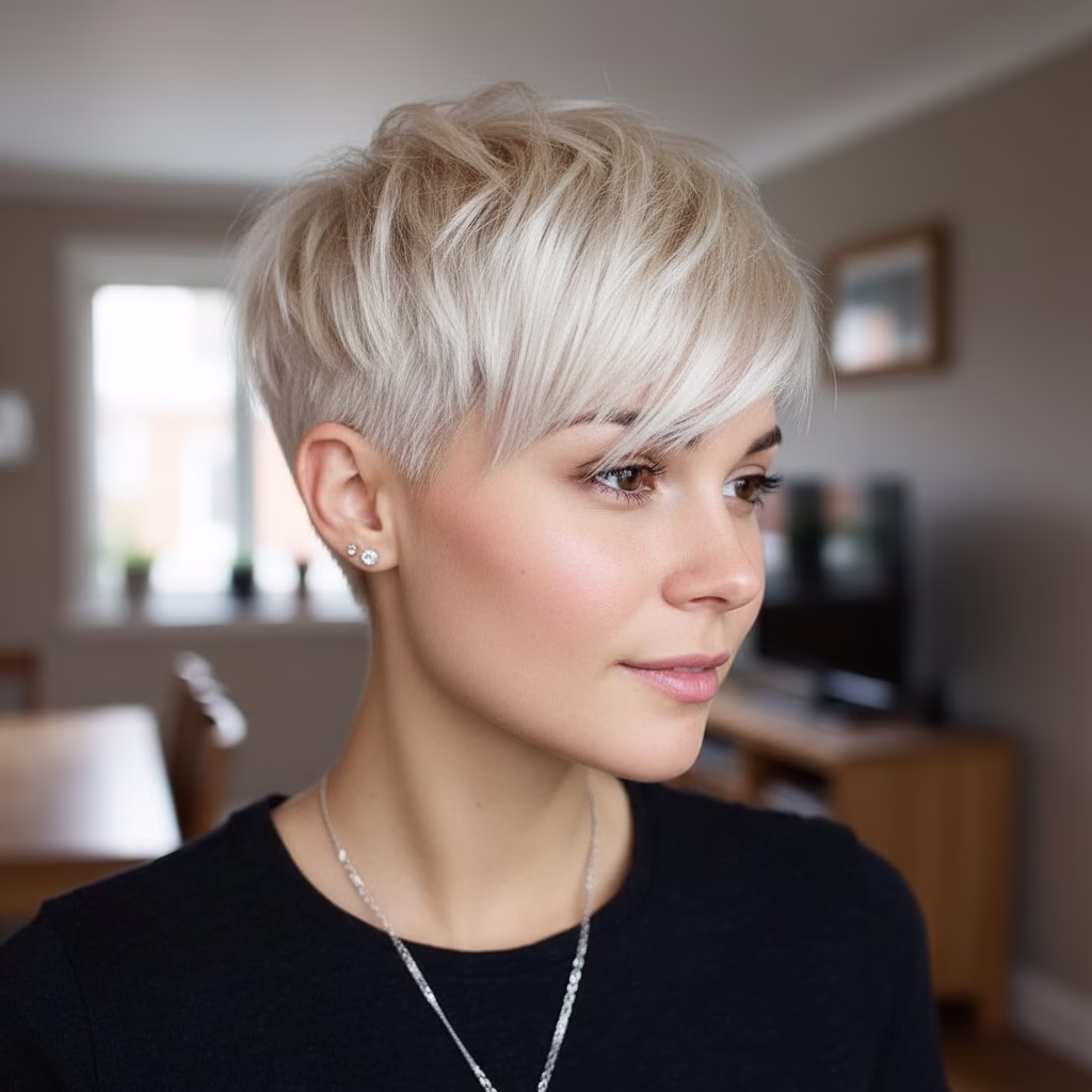 Kurzhaarfrisuren für Blonde sind erstaunlich wandelbar. Sie können weich und feminin wirken oder bewusst markant und ausdrucksstark. Die helle Haarfarbe sorgt dafür, dass selbst mutige Schnitte harmonisch bleiben.