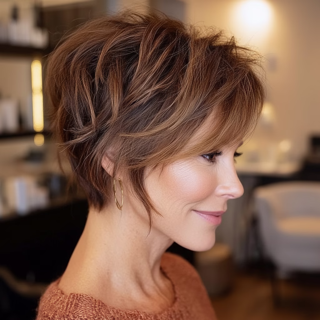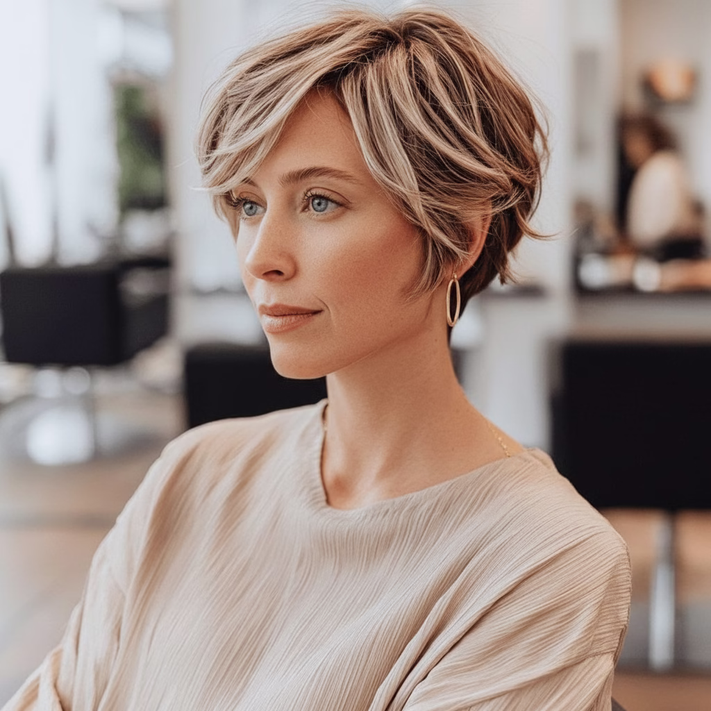 Kurzhaarfrisuren mit Strähnen wirken modern, ohne übertrieben zu sein. Sie bieten genau die richtige Balance zwischen Natürlichkeit und Stilbewusstsein – ein entscheidender Grund für ihre anhaltende Beliebtheit.