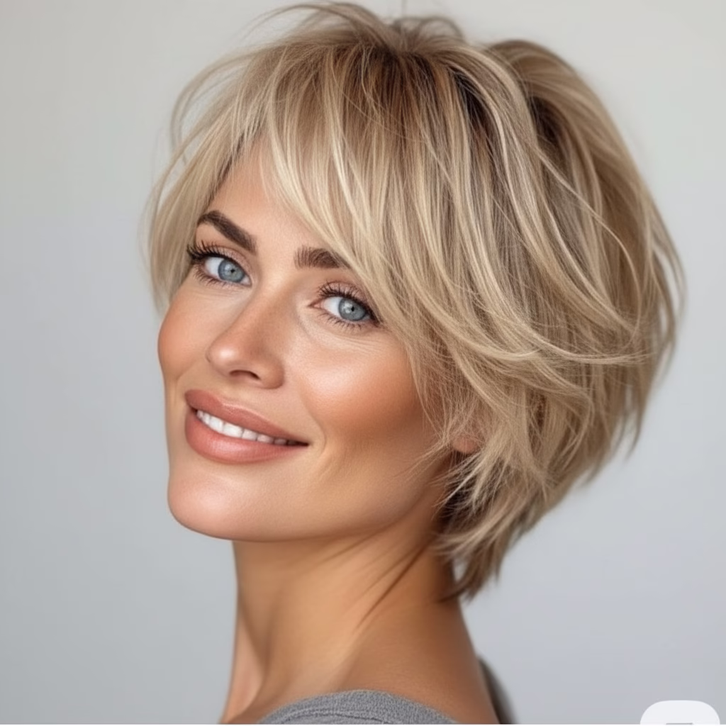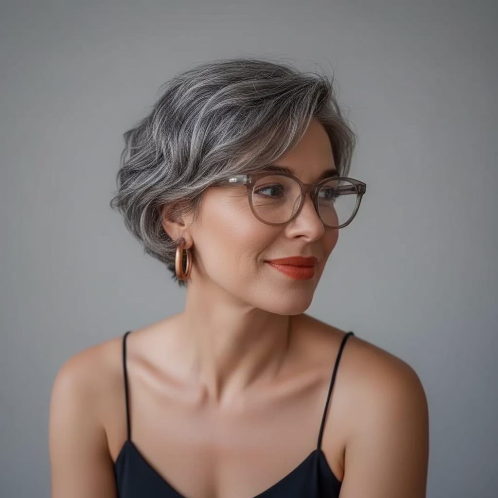 Kurze Haare lenken den Fokus auf Mimik, Augen und Gesichtskonturen. Dadurch tritt die Persönlichkeit stärker in den Vordergrund. Für Frauen ab 50 ist das oft besonders reizvoll, da Lebenserfahrung und Ausstrahlung sichtbar werden dürfen.