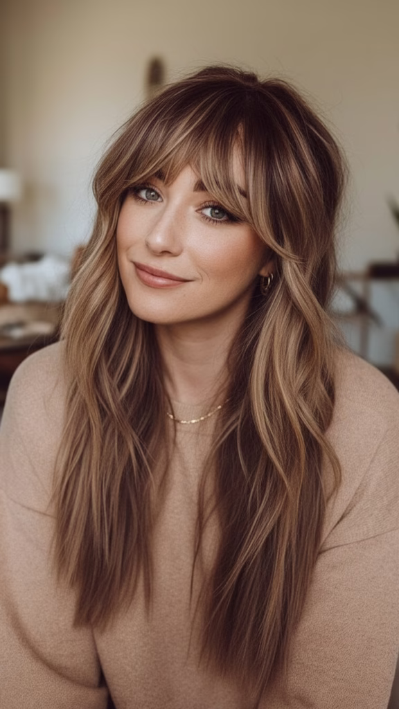 Ob feminin, modern oder klassisch – der lange Stufenschnitt mit Pony lässt sich unterschiedlich interpretieren. Seine Vielseitigkeit macht ihn zu einer beliebten Wahl für verschiedenste Stilvorlieben.
