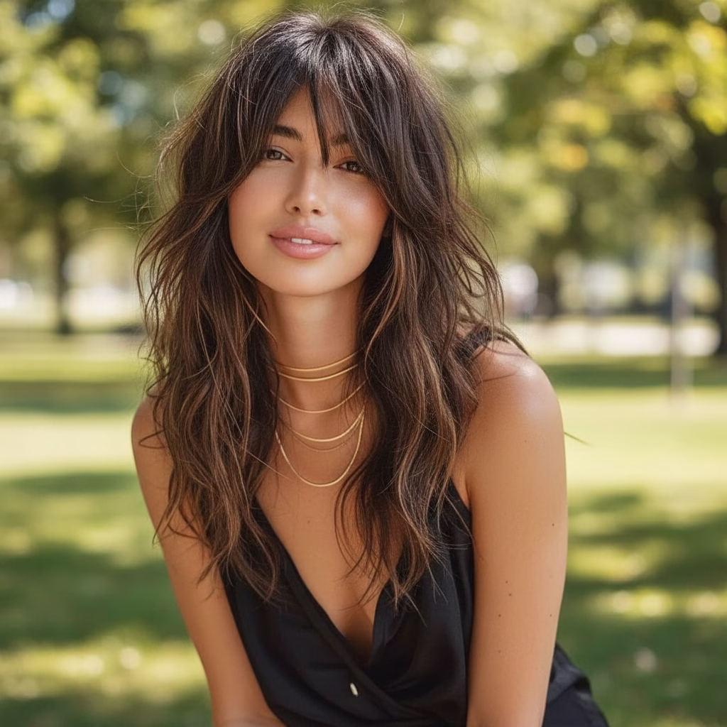 Der Layered Cut passt sich unterschiedlichen Looks an, ohne seine Grundstruktur zu verlieren. Er kann elegant, modern oder dezent wirken und fügt sich nahtlos in verschiedene modische Konzepte ein.