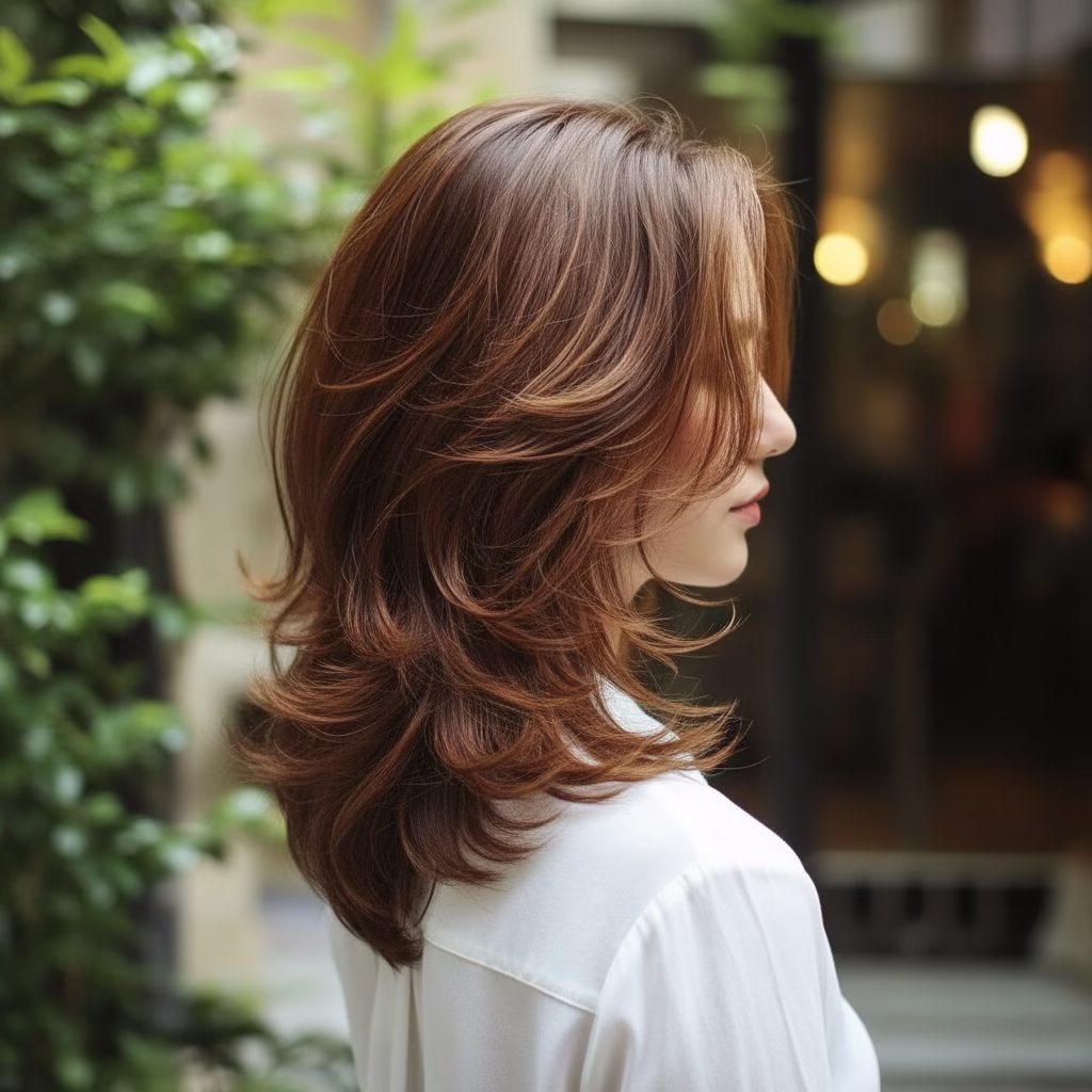 Damen, die sich für einen Layered Cut entscheiden, setzen auf einen Haarschnitt, der Persönlichkeit unterstreicht, ohne sich in den Vordergrund zu drängen. Der Schnitt wirkt durchdacht, ausgewogen und stilvoll.