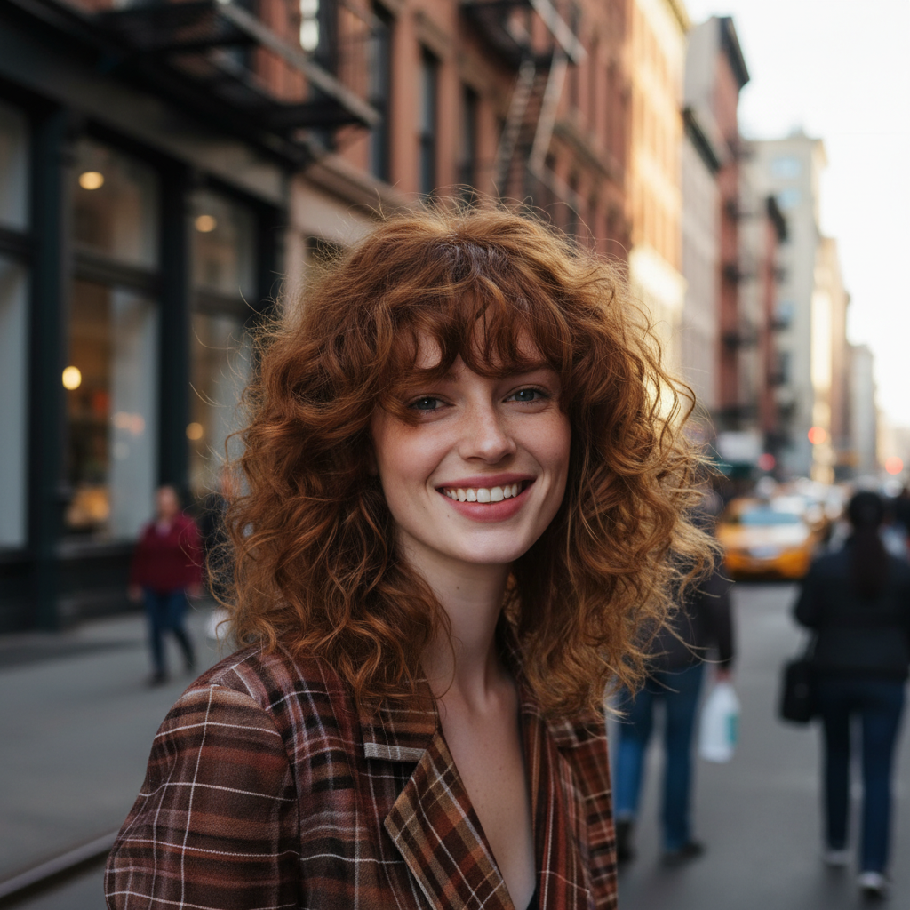 Lockige Frisuren mittellang verkörpern eine moderne Form von Weiblichkeit. Sie sind selbstbestimmt, natürlich und ausdrucksstark. Die Frisur wird Teil der Persönlichkeit, nicht bloßes Accessoire.