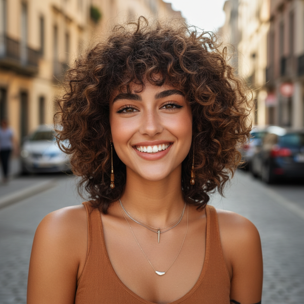 Mittellange lockige Frisuren vereinen Leichtigkeit, Ausdruck und Vielseitigkeit. Sie gelten als ideale Länge für Frauen, die ihre natürliche Haarstruktur betonen möchten, ohne auf Flexibilität zu verzichten. Locken in mittlerer Länge wirken lebendig, weich und gleichzeitig stilvoll. Sie rahmen das Gesicht, schaffen Volumen und verleihen dem Erscheinungsbild eine besondere Dynamik.