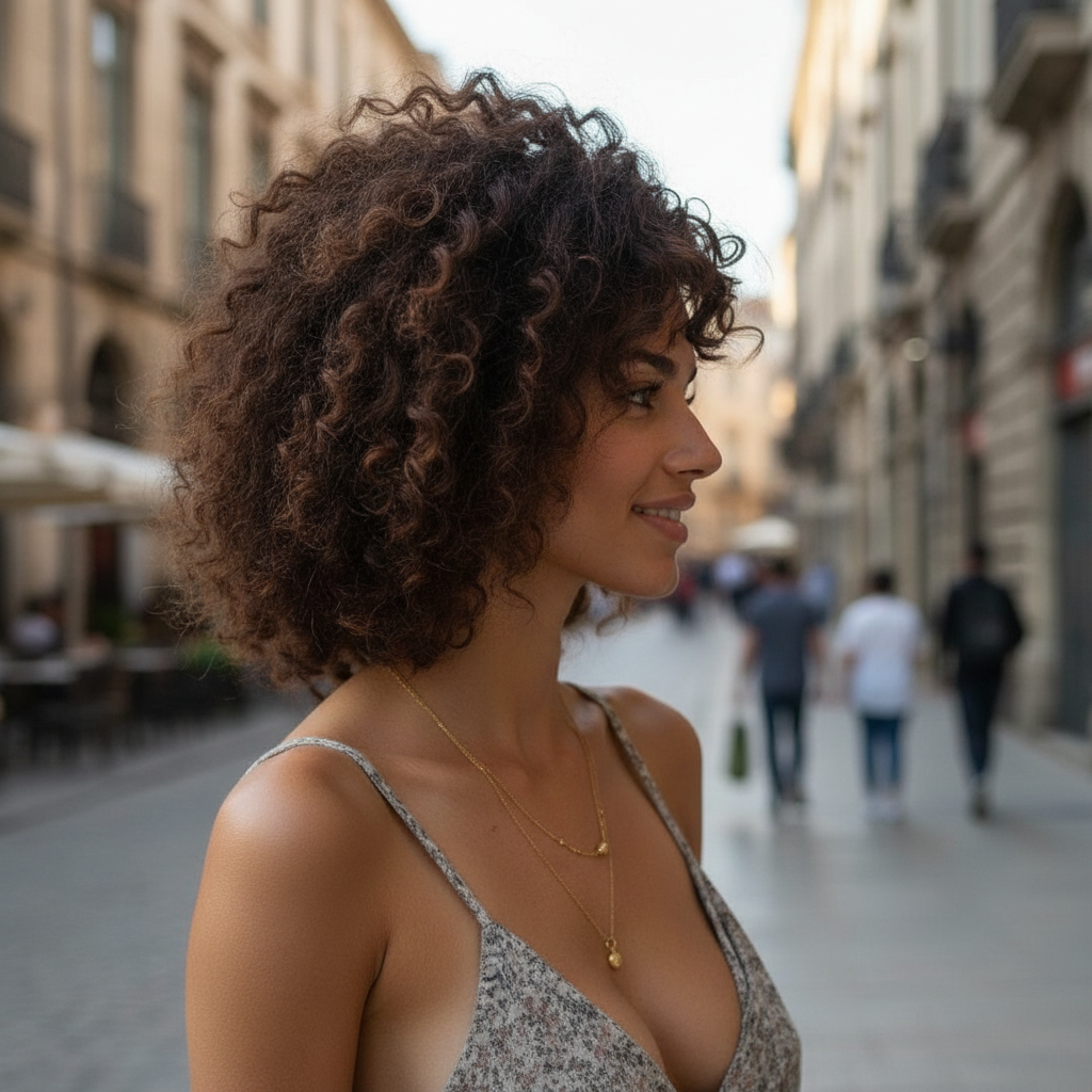 Natürlich lockiges Haar zu tragen, ist ein Statement. Mittellange Locken stehen für Akzeptanz der eigenen Haarstruktur und für Selbstbewusstsein. Sie wirken kraftvoll und zugleich feminin.