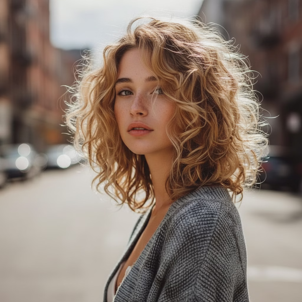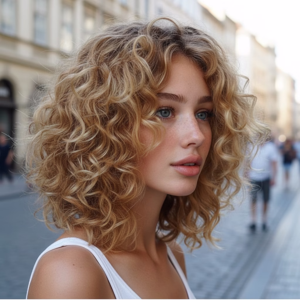 Lockiges Haar wird zunehmend als Ausdruck persönlicher Stärke und Authentizität wahrgenommen. Statt Normen zu folgen, stehen natürliche Texturen im Mittelpunkt. Mittellange blonde Locken verkörpern genau diesen Ansatz: Sie wirken individuell, selbstbewusst und unverwechselbar.