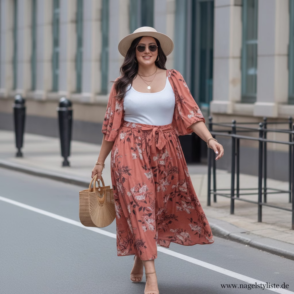 Outfits für mollige Frauen ab 50 vereinen Modernität, Eleganz und Komfort auf eine Weise, die unvergleichlich ist. Sie zeigen, wie wunderschön, einzigartig und inspirierend ein reifer Stil sein kann – zeitlos, sinnlich und mit einem Funken luxuriöser Leichtigkeit.