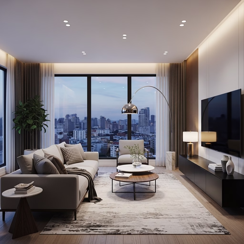 Moderne Inneneinrichtung setzt nicht auf kurzlebige Trends. Zeitlose Gestaltung sorgt dafür, dass das Wohnzimmer auch nach Jahren aktuell wirkt. Klare Linien und hochwertige Materialien unterstützen diese Beständigkeit.