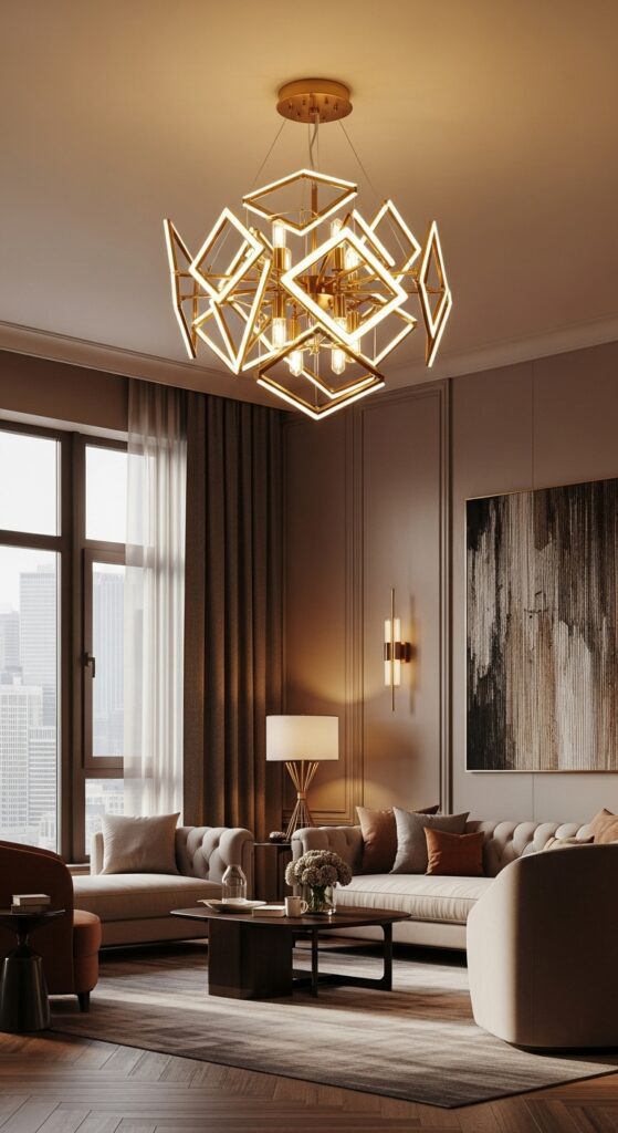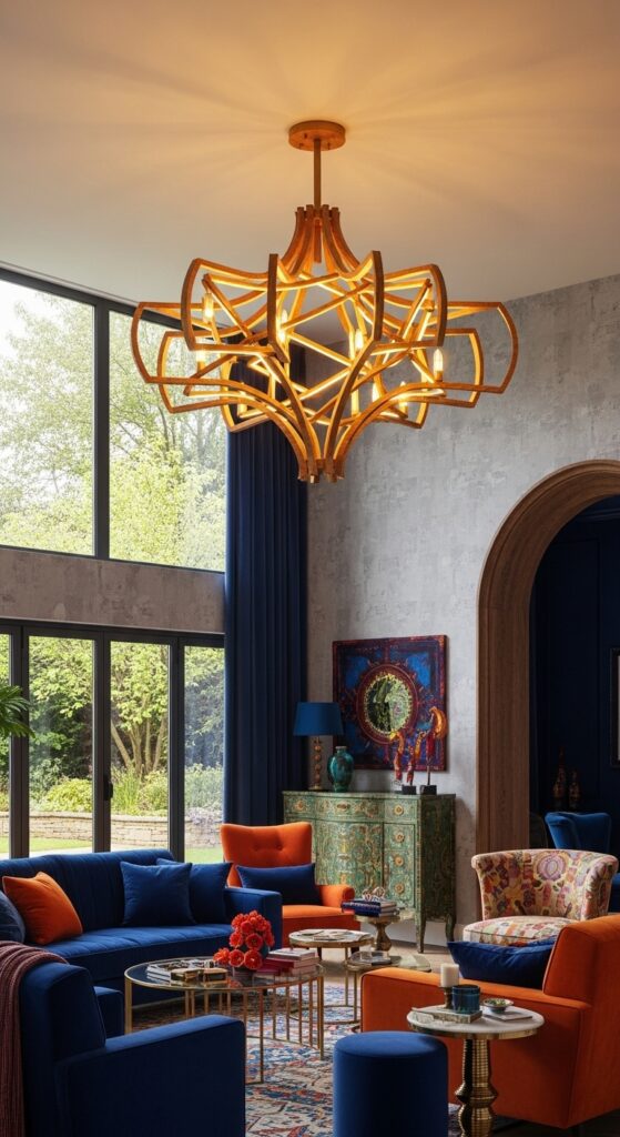 ✨ Statement-Kronleuchter mit asymmetrischen Designs oder mehreren Ebenen sind ein Highlight.