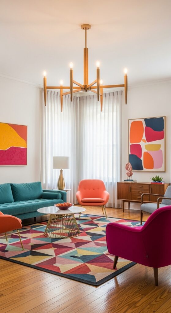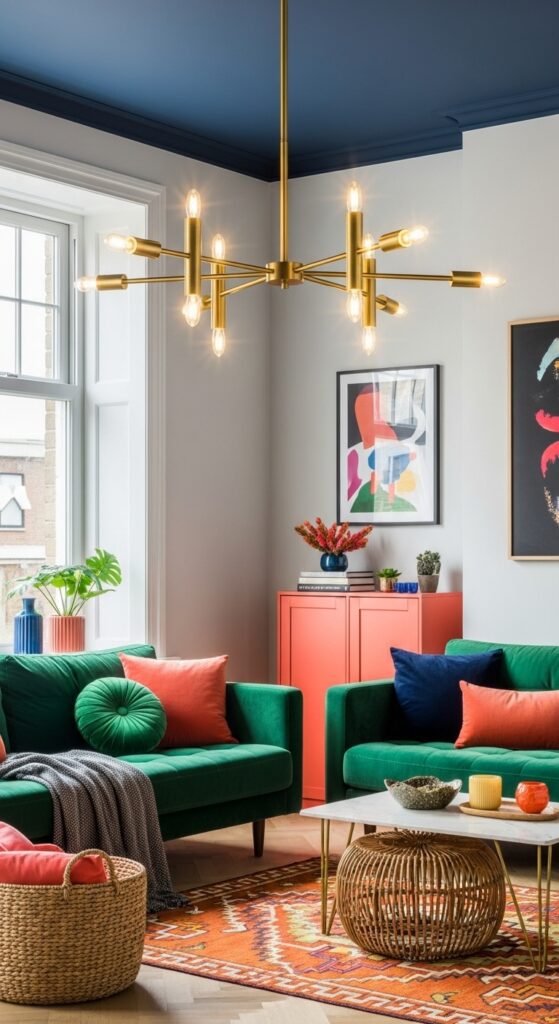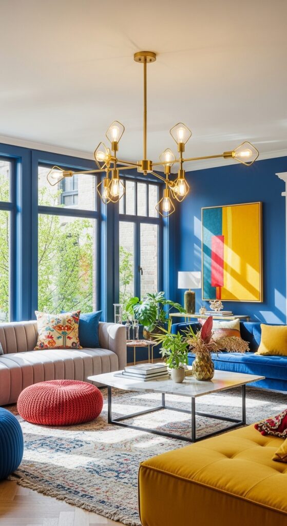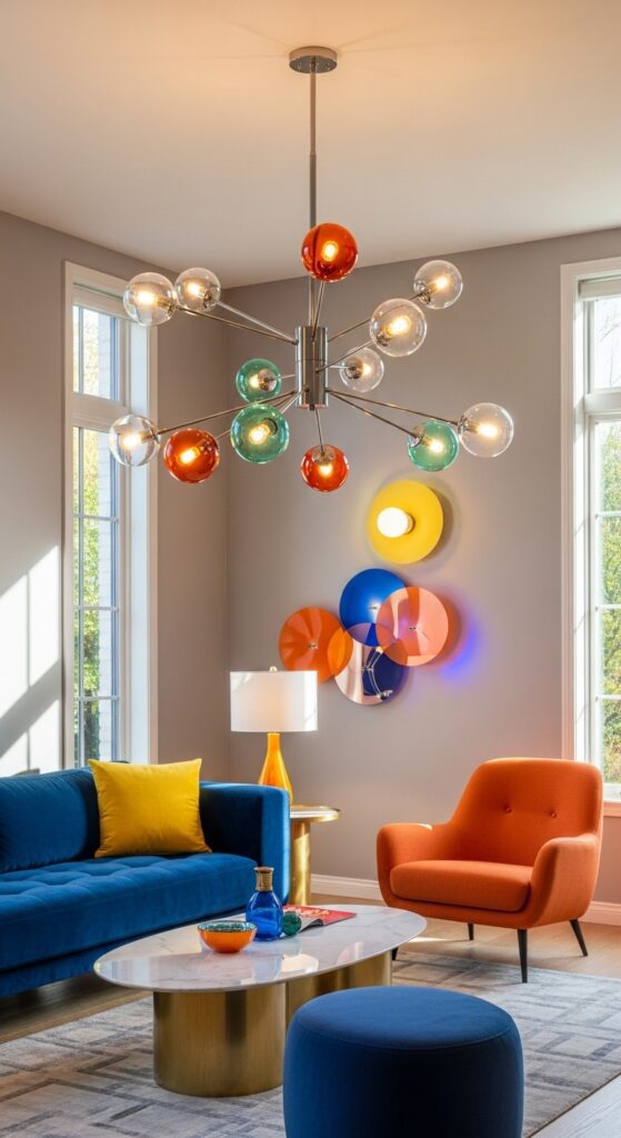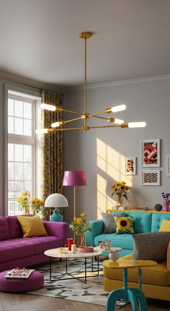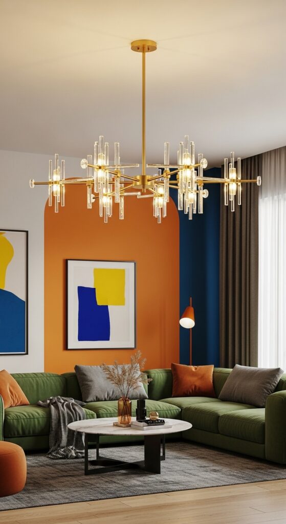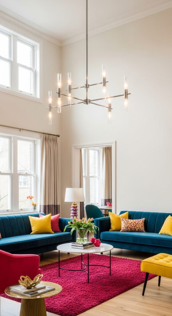 Ein moderner Kronleuchter lässt sich auch wunderbar mit anderen Leuchten kombinieren – etwa mit Wandlampen oder Stehleuchten im gleichen Stil 🕯️.