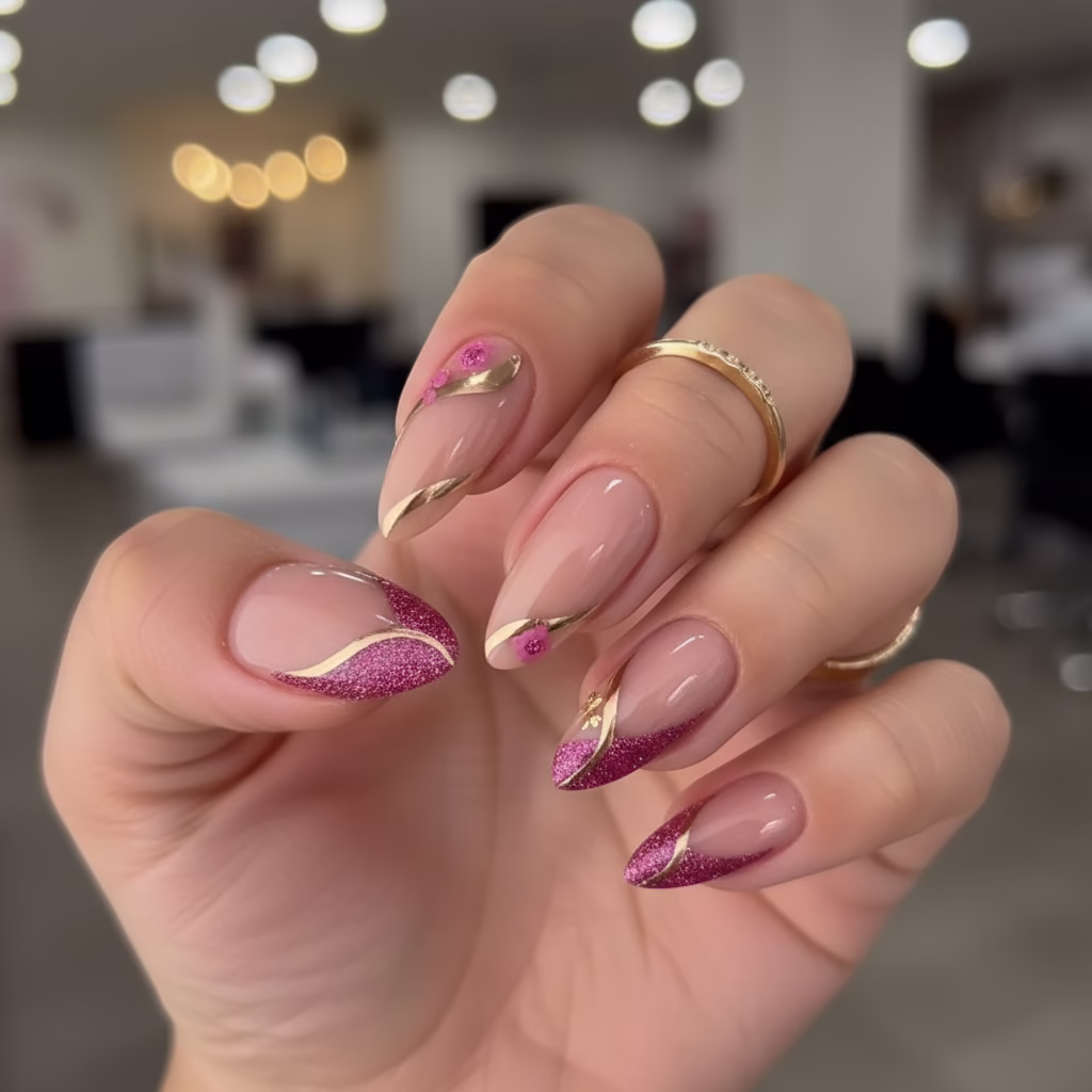 Rosa-goldene Nägel eignen sich sowohl für den Alltag als auch für besondere Momente. Ihre ruhige Eleganz passt zu vielen Gelegenheiten und wirkt stets gepflegt und hochwertig.