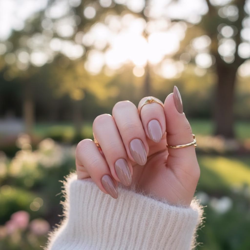Nude Nägel in ovaler Form stehen für eine moderne, selbstbewusste Interpretation von Femininität. Sie verzichten auf Überladenheit und setzen stattdessen auf klare, harmonische Formen.