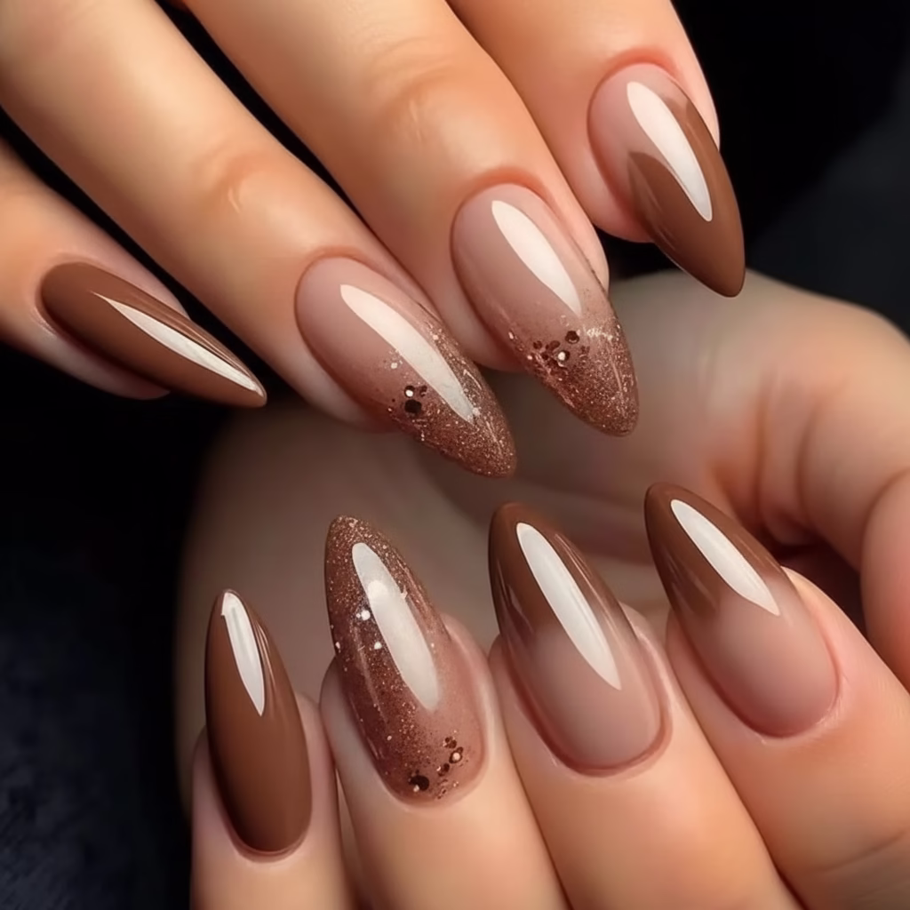 Der Ombré-Effekt sorgt dafür, dass Nägel nicht statisch wirken. Die fließenden Übergänge machen das Design lebendig, ohne es zu überladen. Gerade im Herbst unterstreicht diese Weichheit eine stilvolle Ausstrahlung.