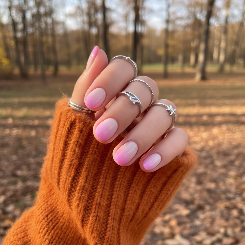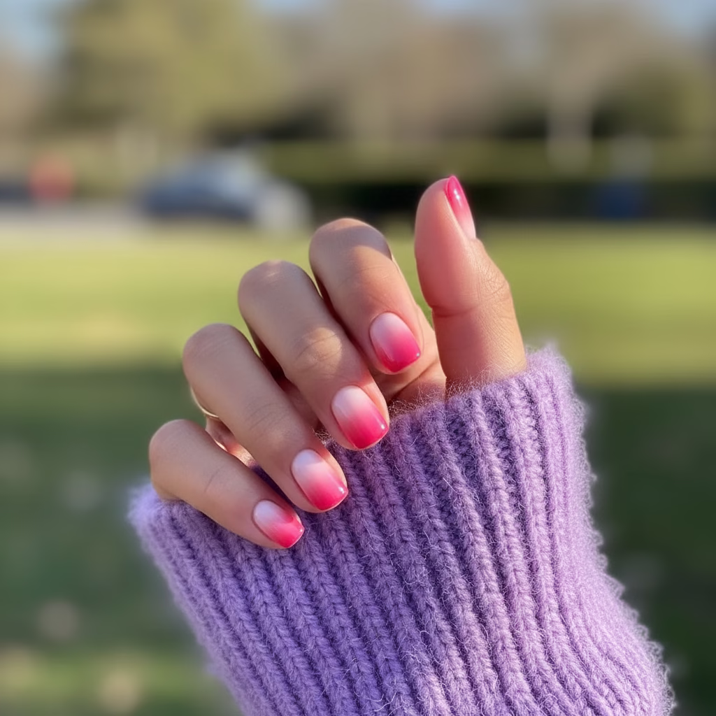 Im Gegensatz zu klaren Farbkanten setzt Ombre auf Übergänge. Diese wirken auf kurzen Nägeln besonders edel und lassen das Design fließend erscheinen.