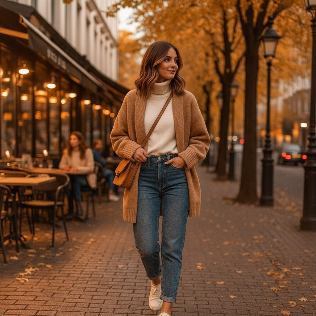 Damen-Outfits im Herbst strahlen oft Geborgenheit aus – ein Gefühl, das in dieser Jahreszeit besonders geschätzt wird.