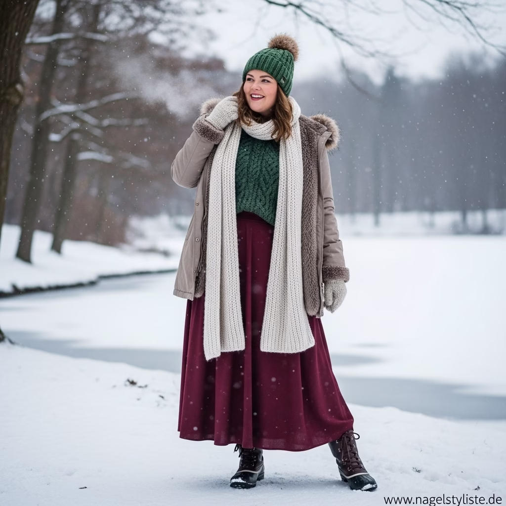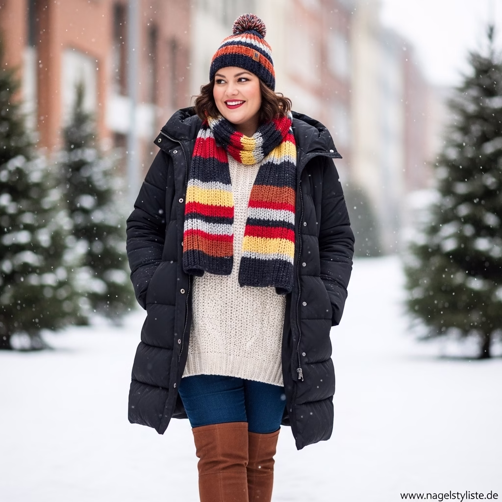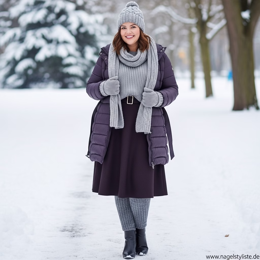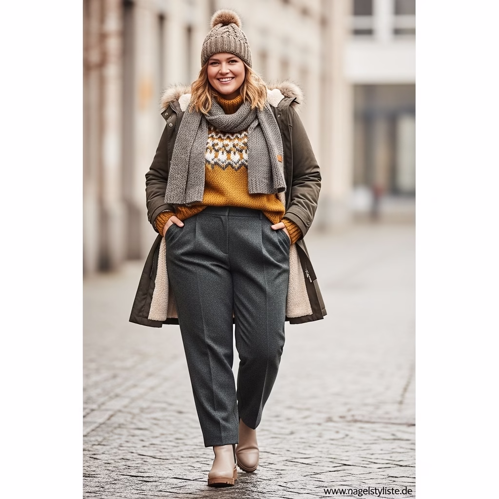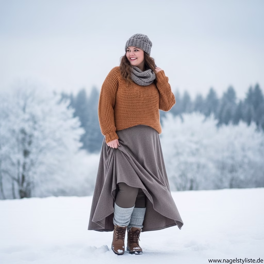 Ein ausgewogenes Verhältnis zwischen Ober- und Unterkörper ist entscheidend für ein harmonisches Winteroutfit. Plus-Size-Mode setzt auf Proportionen, die Natürlichkeit und Stil vereinen.