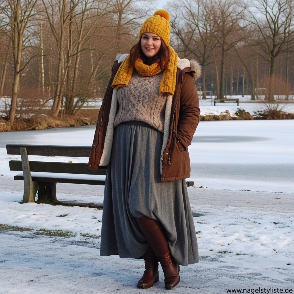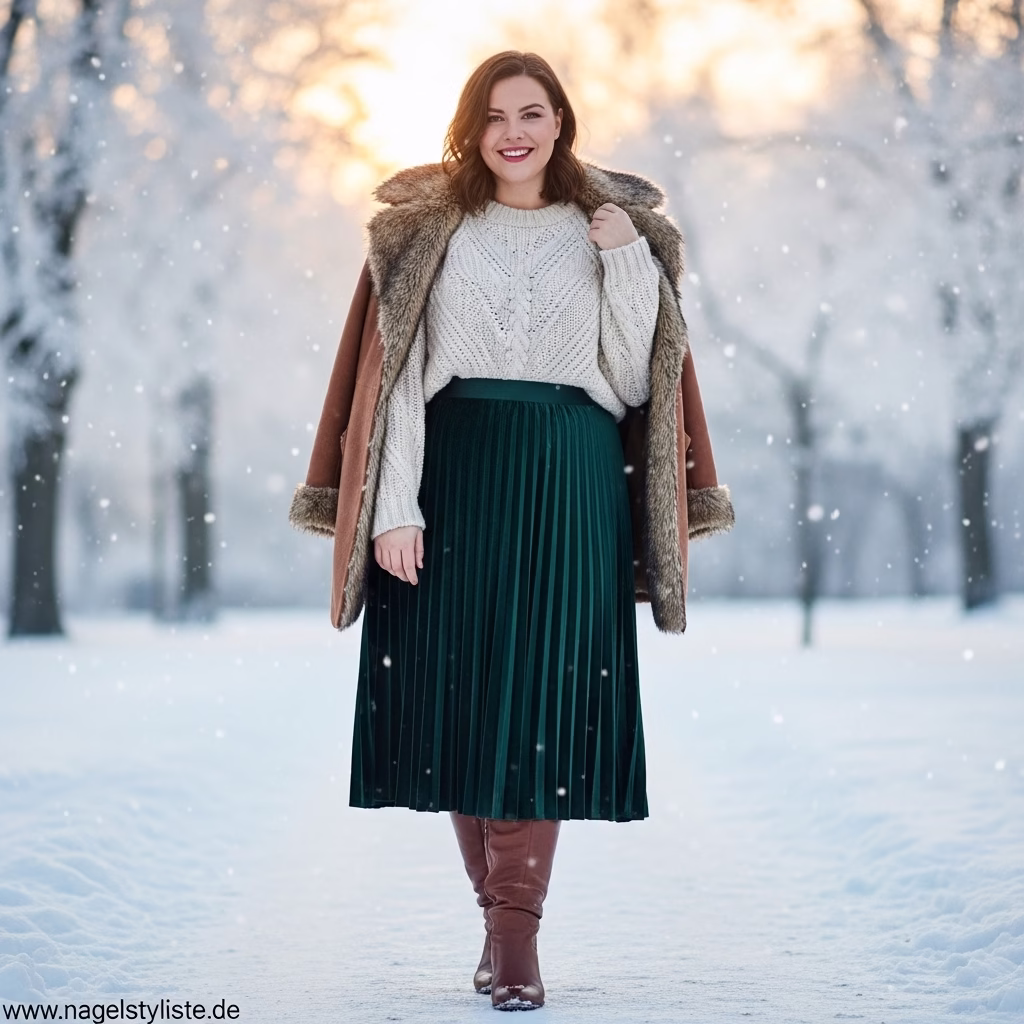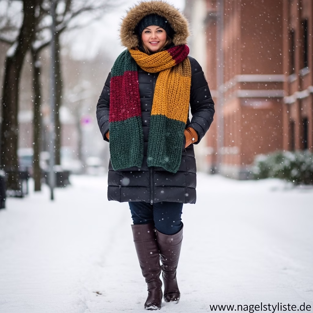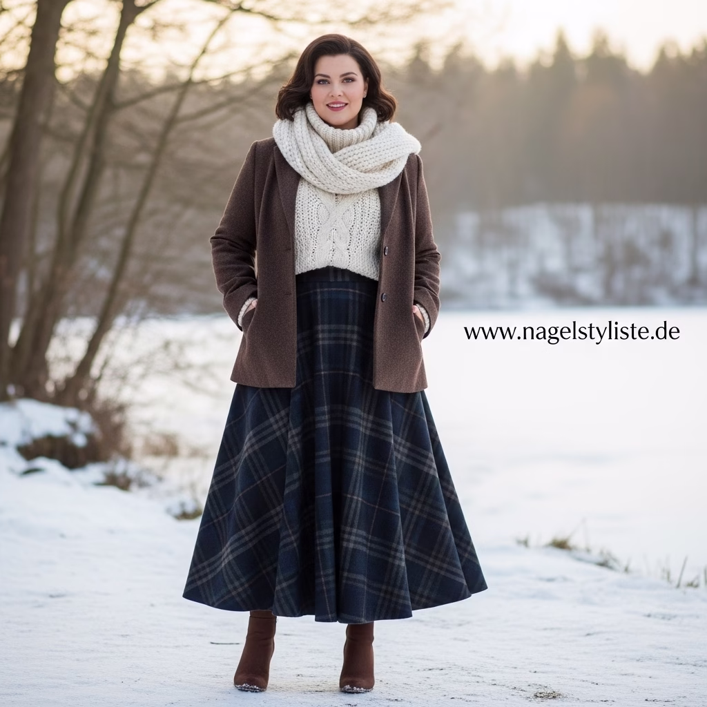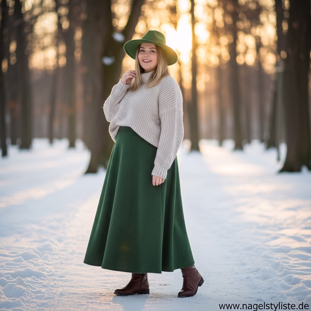 Ein ausgewogenes Verhältnis zwischen Ober- und Unterkörper ist entscheidend für ein harmonisches Winteroutfit. Plus-Size-Mode setzt auf Proportionen, die Natürlichkeit und Stil vereinen.