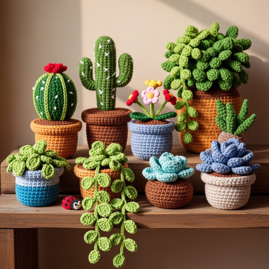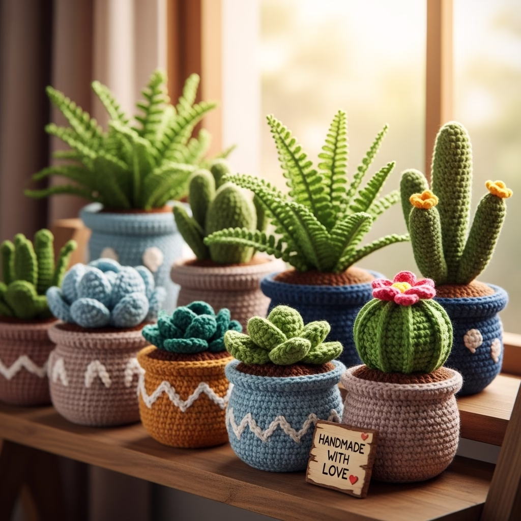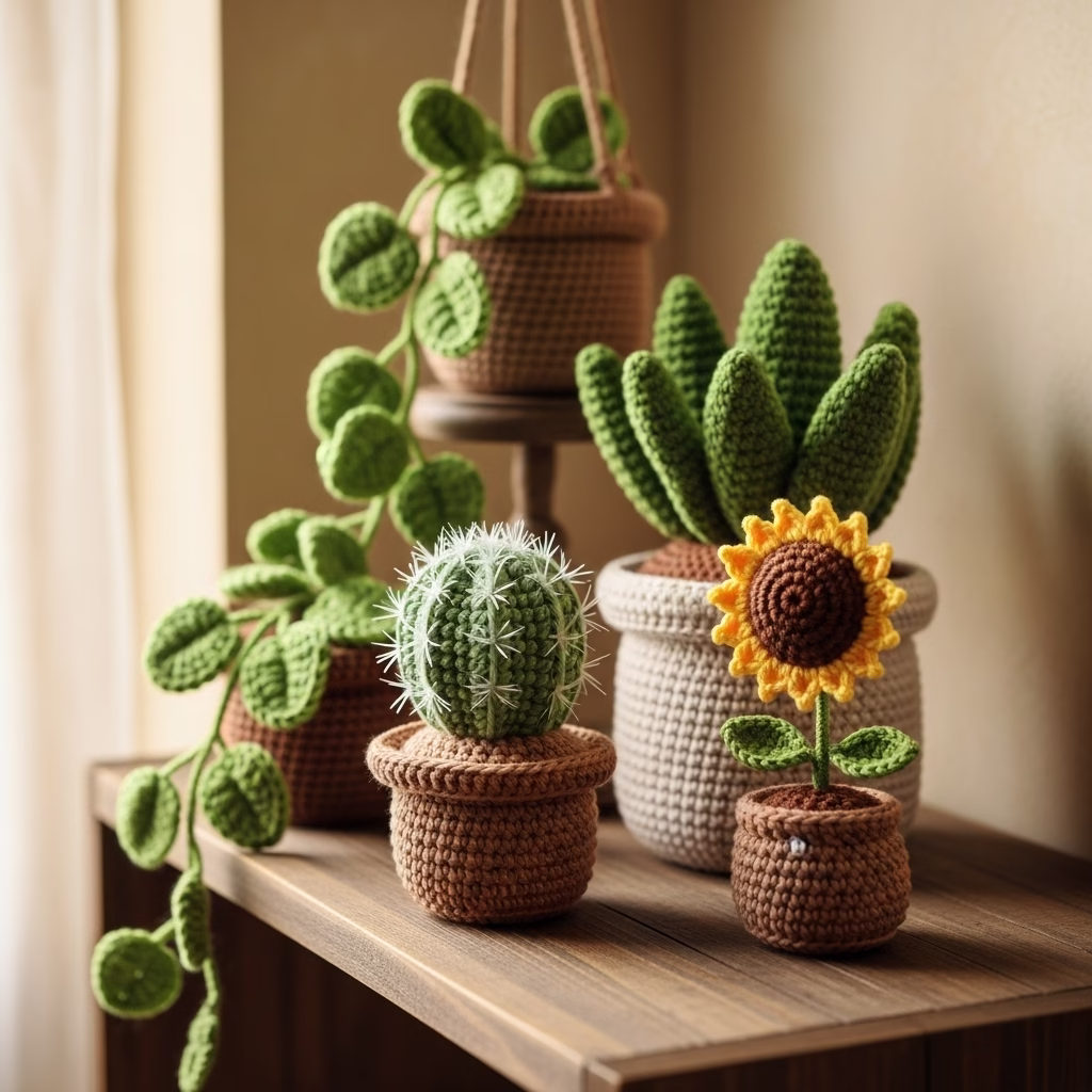 Ein klarer Vorteil gehäkelter Pflanzen liegt in ihrer Beständigkeit. Sie verändern sich nicht, verlieren keine Blätter und benötigen keine Aufmerksamkeit. Dadurch bleiben Räume dauerhaft gepflegt und harmonisch.