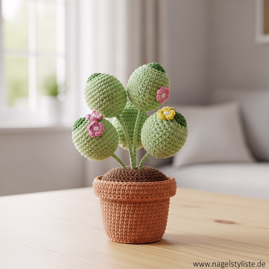 Gleichzeitig transportieren sie eine handwerkliche Wärme, die maschinell hergestellte Dekoration oft vermissen lässt. Jede gehäkelte Pflanze wirkt individuell, selbst wenn sie klaren Formen folgt.
