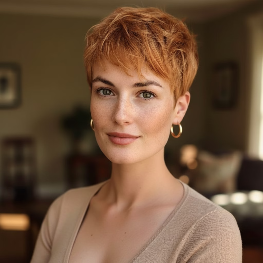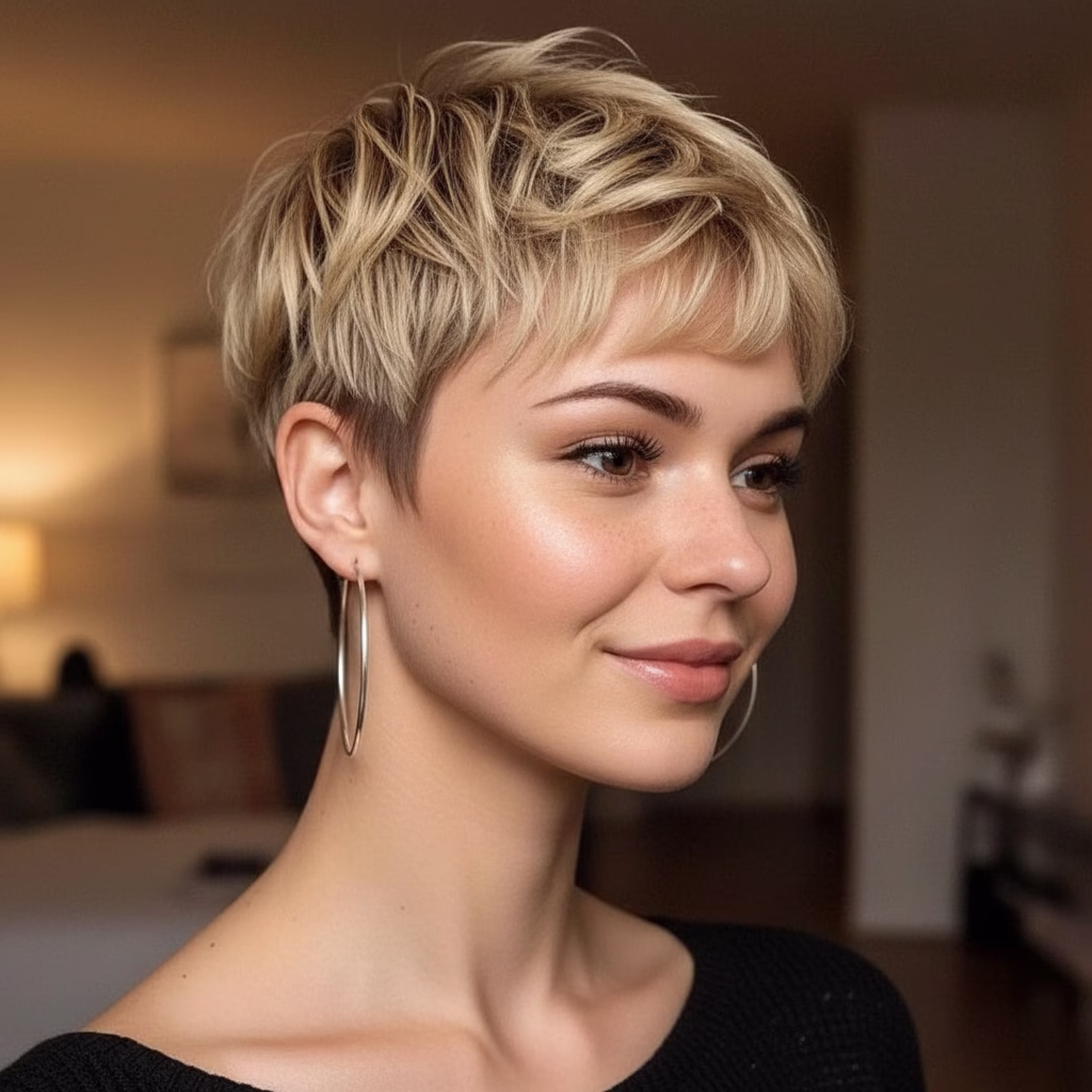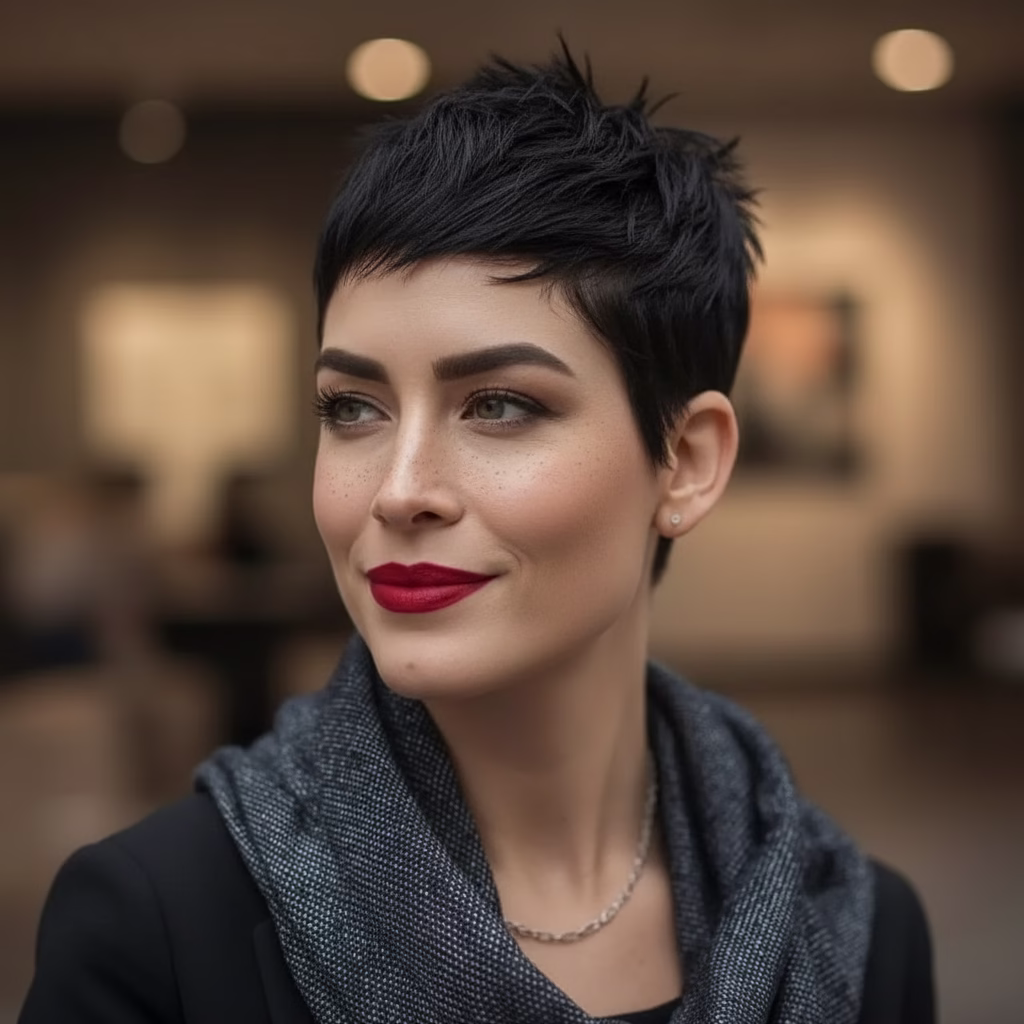 Der Reiz des Pixi Haarschnitts liegt nicht allein in seiner Länge, sondern in seiner Wirkung. Er lenkt den Blick auf Gesichtszüge, unterstreicht Konturen und schafft eine klare Silhouette. Dadurch wirkt der Look bewusst, stark und zugleich überraschend vielseitig.