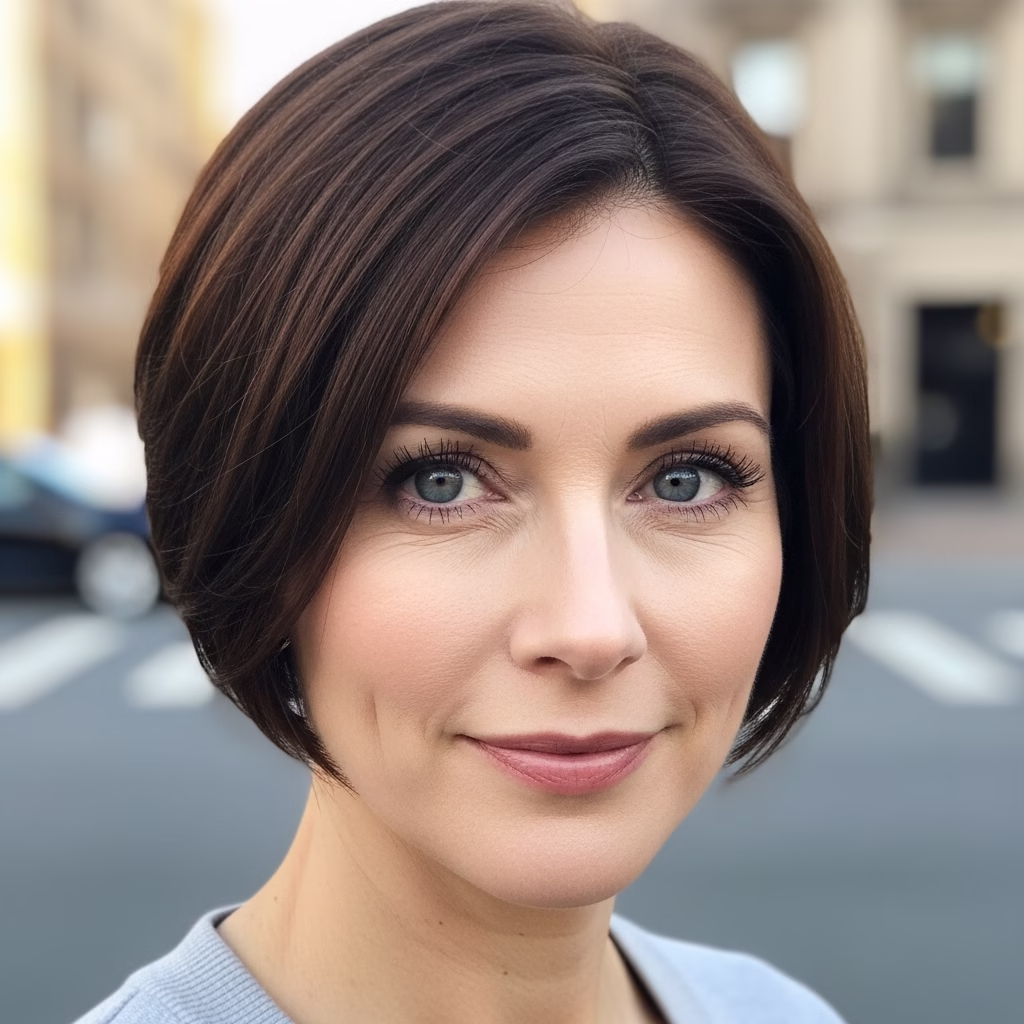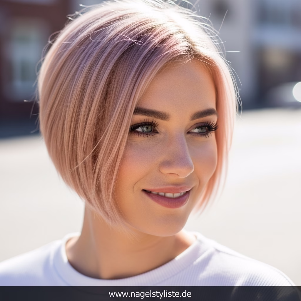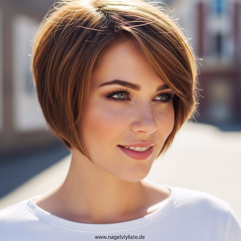 Frauen mit feinem Haar profitieren von dem leichten Volumen am Oberkopf, während dichtes Haar durch die gestufte Form Definition erhält. Der Schnitt passt sich jeder Gesichtsform an – ob oval, herzförmig oder eckig – und schafft stets eine harmonische Silhouette.