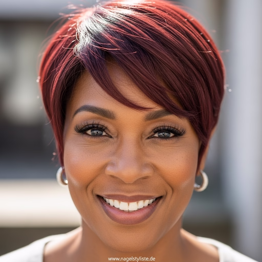 Der Pixie Bob Haircut Over 50 steht diesen Frauen besonders gut, weil er ihre Gesichtszüge betont und gleichzeitig jugendliche Leichtigkeit vermittelt – ohne dabei aufgesetzt zu wirken.