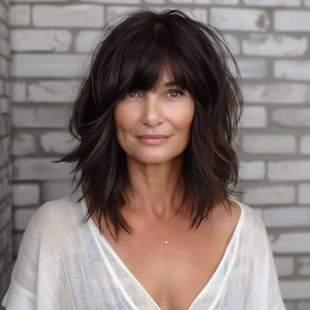 Eine Ponyfrisur bei mittellangen Haaren wirkt individuell und persönlich. Sie vermittelt Stilbewusstsein und ein Gespür für Proportionen, ohne aufdringlich zu sein.