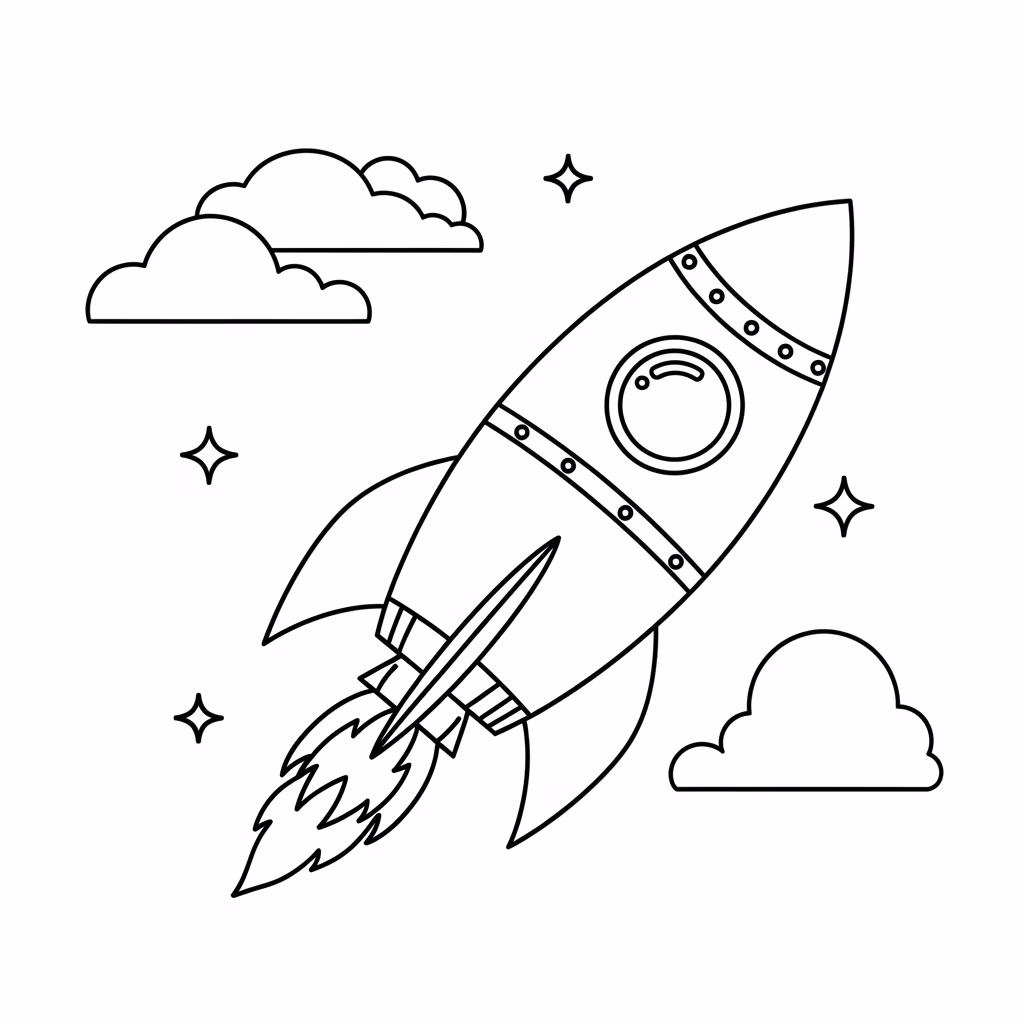 Ein Rakete Ausmalbild erzählt keine feste Geschichte. Es lässt Raum für Interpretation. Wohin fliegt die Rakete? Wer sitzt darin? Was wartet am Ziel? Diese offenen Fragen regen die Fantasie an und erweitern das Bild im Kopf.
