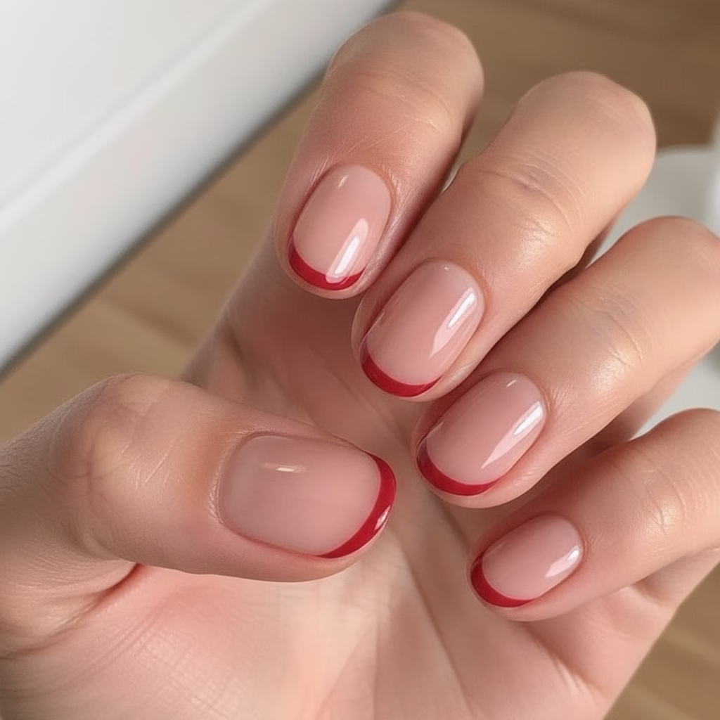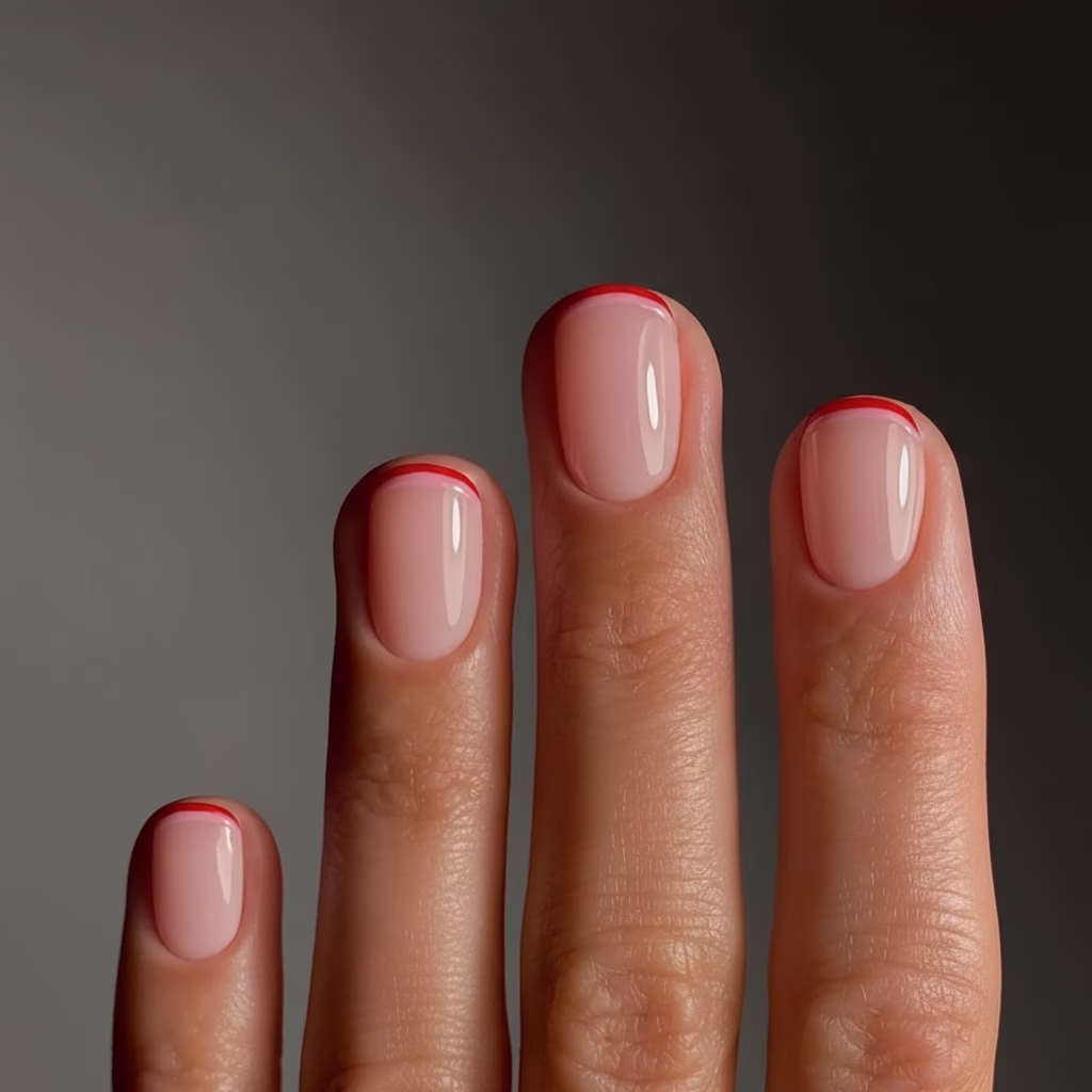 Rote French Nägel sind auffällig – aber kontrolliert.