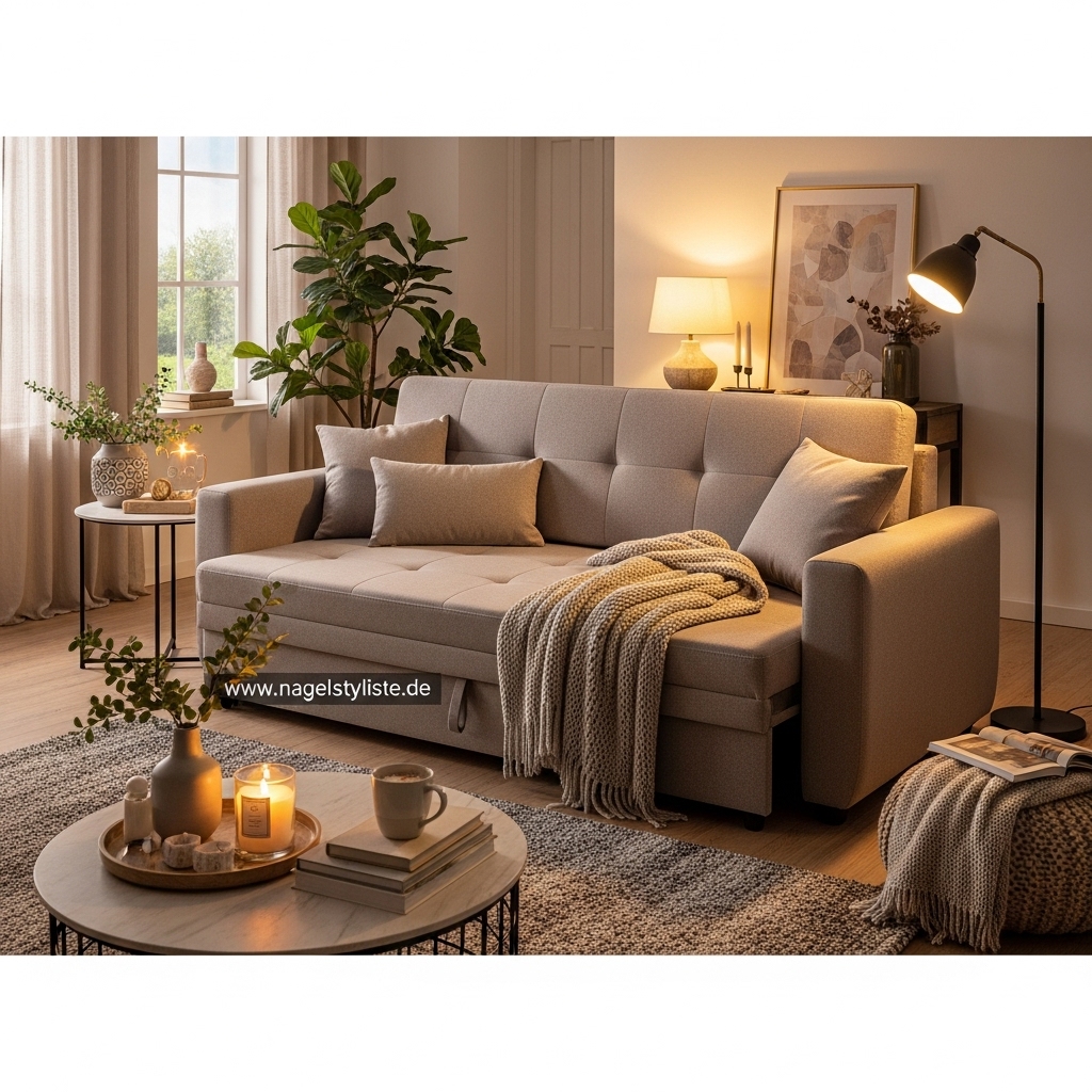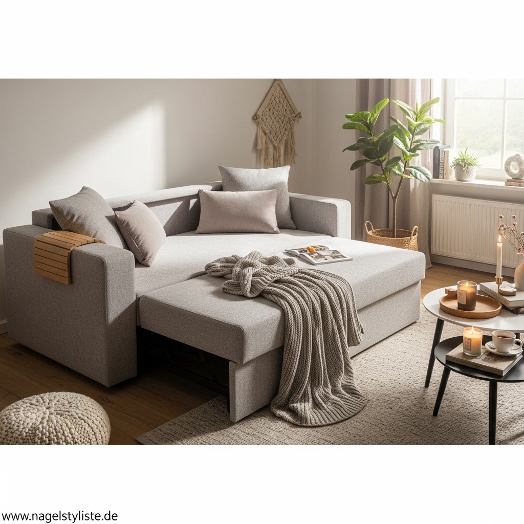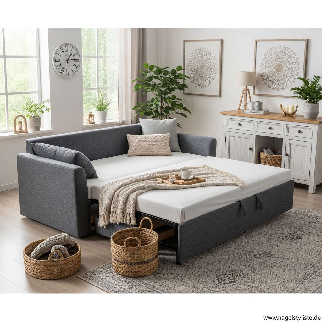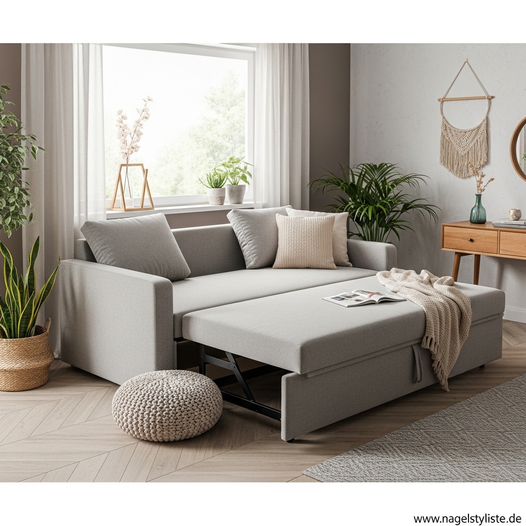 Ein Schlafsofa vermittelt Funktionalität. Es zeigt, dass der Raum vielseitig gedacht ist. Je nach Design kann es wohnlich oder eher sachlich wirken.