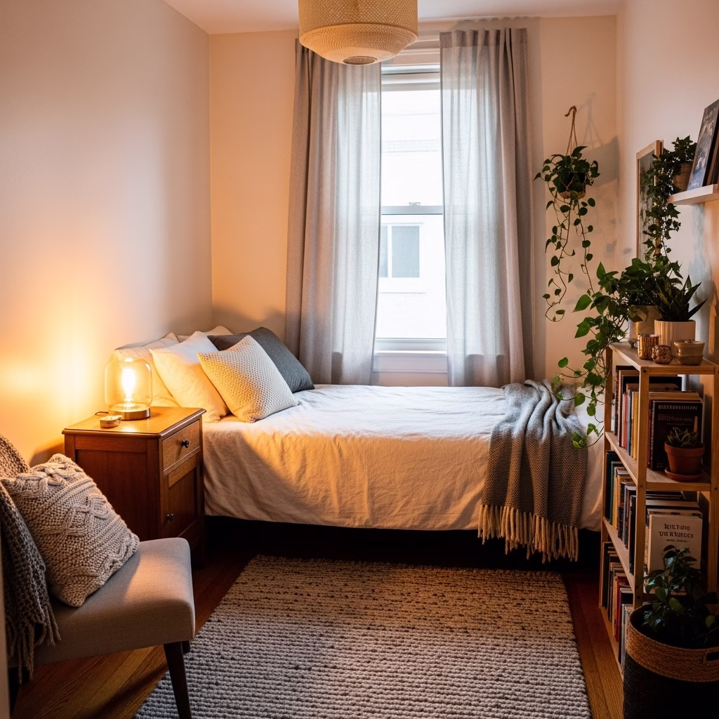 Visuelle Stille ist ein zentraler Faktor für erholsamen Schlaf. Eine ruhige Schlafzimmer Einrichtung unterstützt diese Stille auch im kleinen Raum.